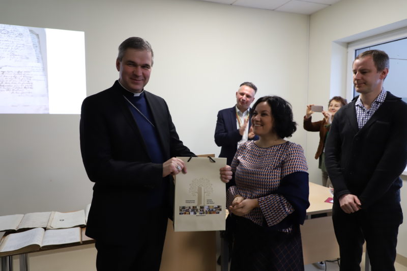 Vyskupas G. L. Vodopjanovas kartu su archyvarais džiaugėsi nuveiktu milžinišku darbu.