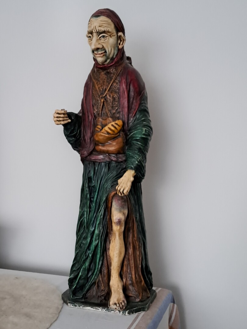 Skulptūra, vaizduojanti triakį elgetą, keliaujantį per pasaulį su maišu, iš kurio kyšo nelabojo kanopos ir uodega, o ant peties tupi papūga, kadaise mieste sukėlė nemažą šurmulį dėl kitos praeivius šokiravusios detalės – į mazgą surišto keliautojo penio.