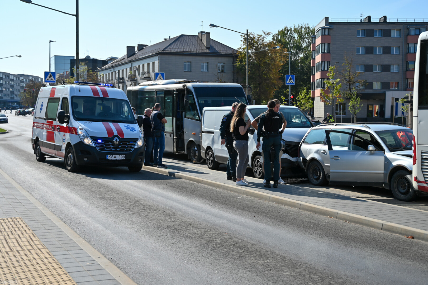 Pirminiais policijos pareigūnų duomenimis, rimtai sužeistų asmenų nėra.