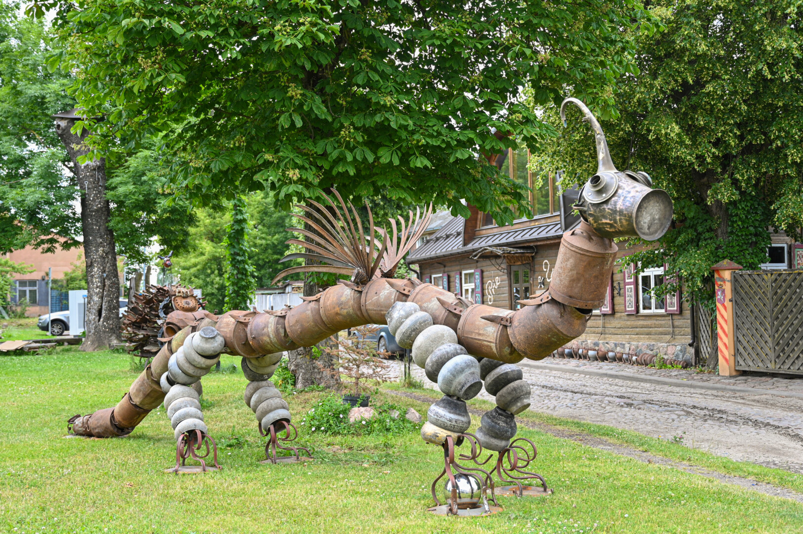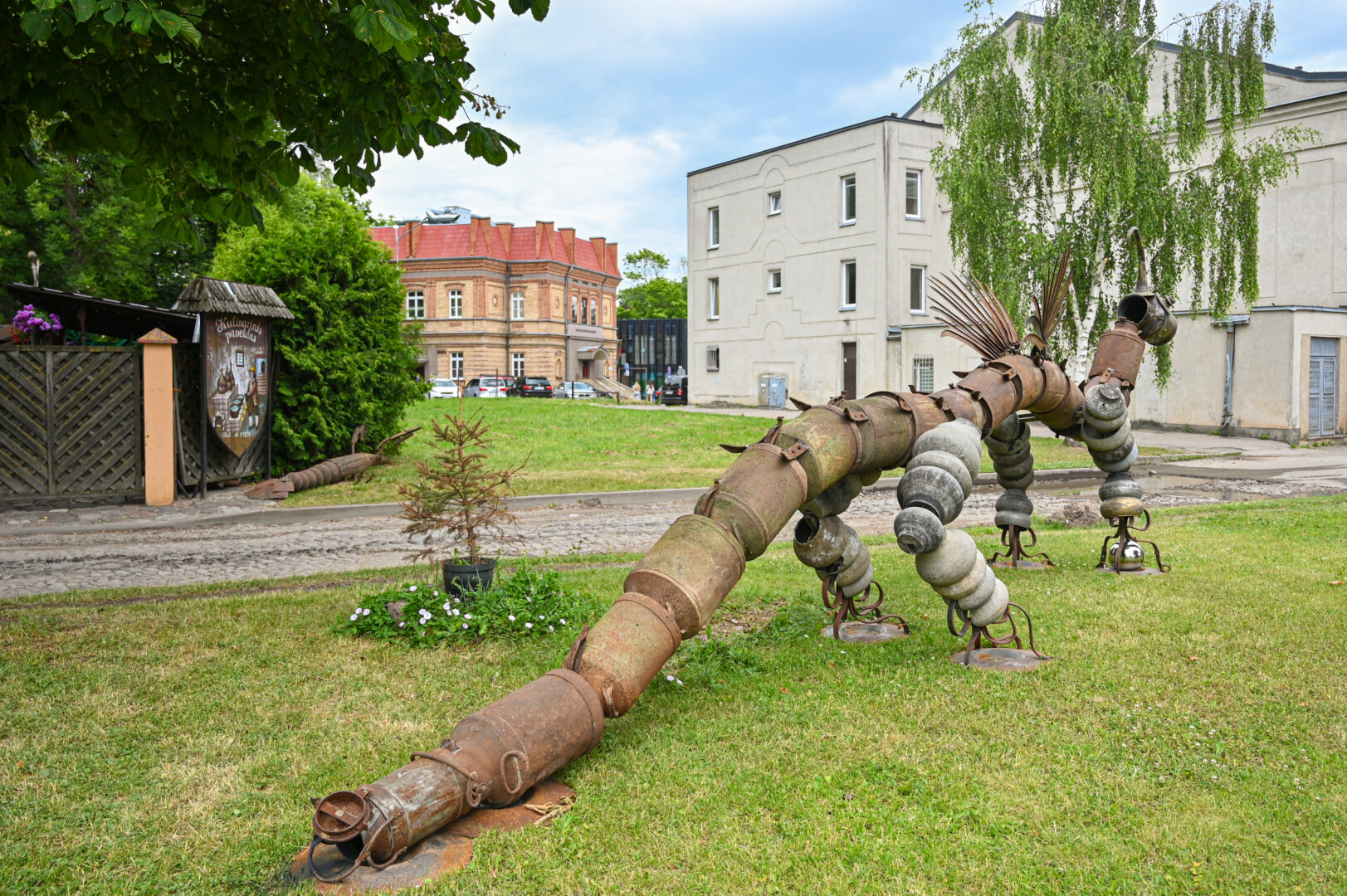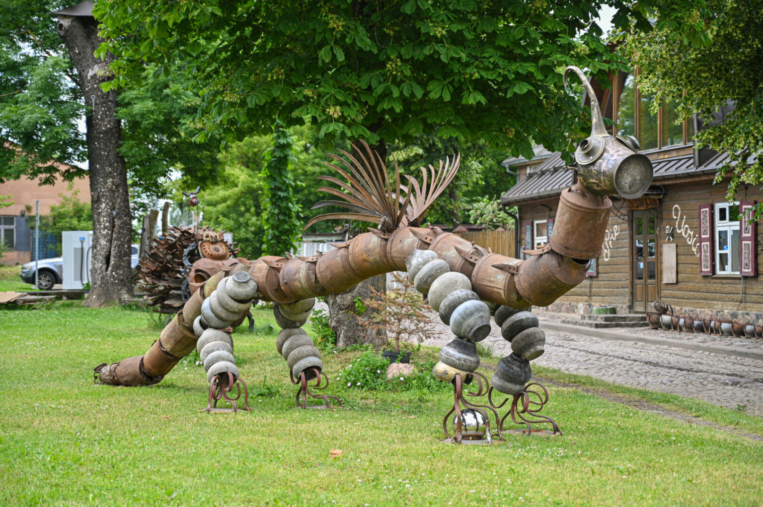 Originalius kūrinius iš metalo laužo ir nereikalingų daiktų kuriantis panevėžietis verslininkas Rimantas Kiela per porą savaičių iš senų bidonų, vadinamųjų sagonų – didelių ketaus puodų be ąsų – ir senų žemės ūkio padargų dalių sumeistravo įspūdingo dydžio drakoną.