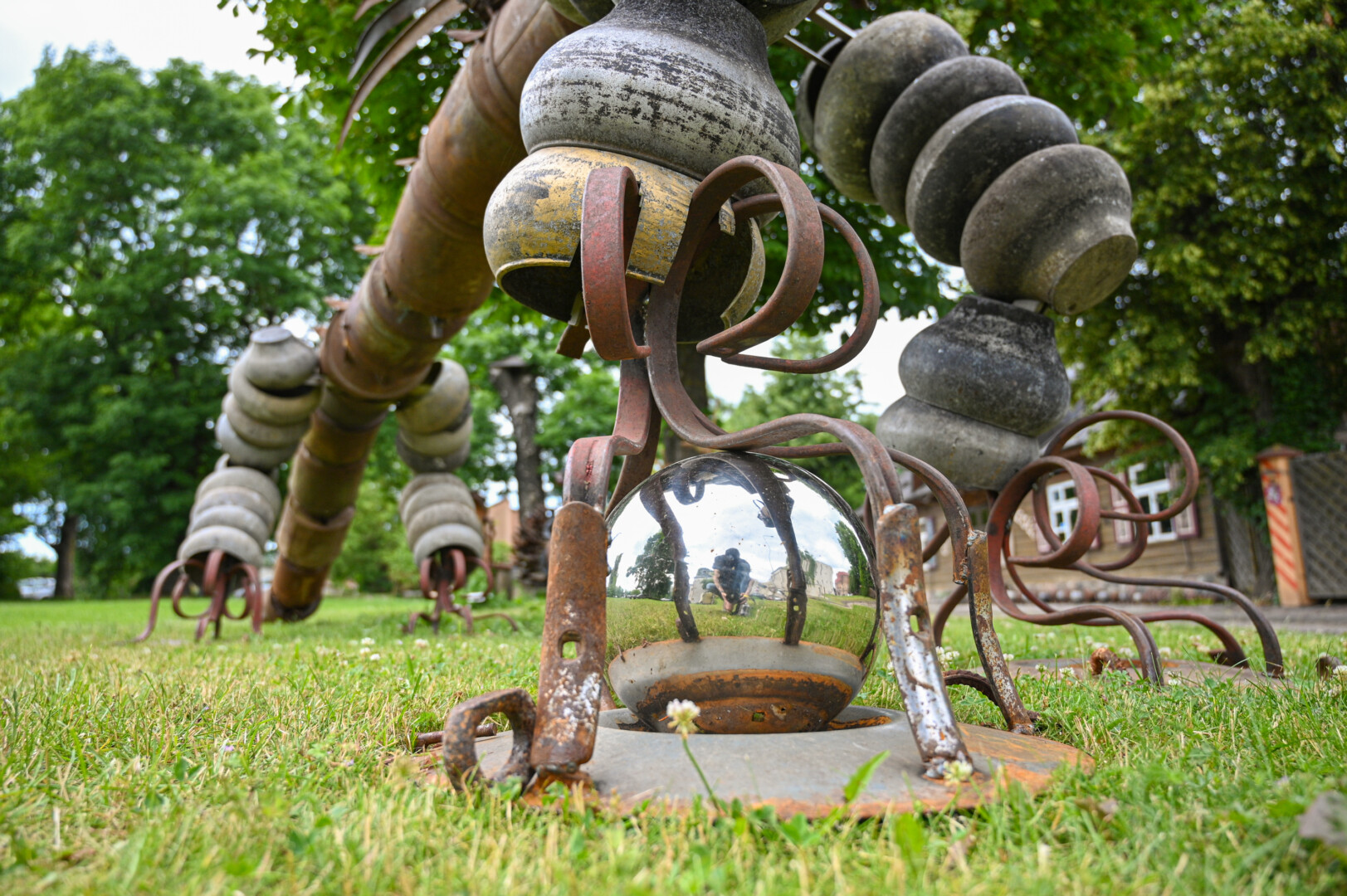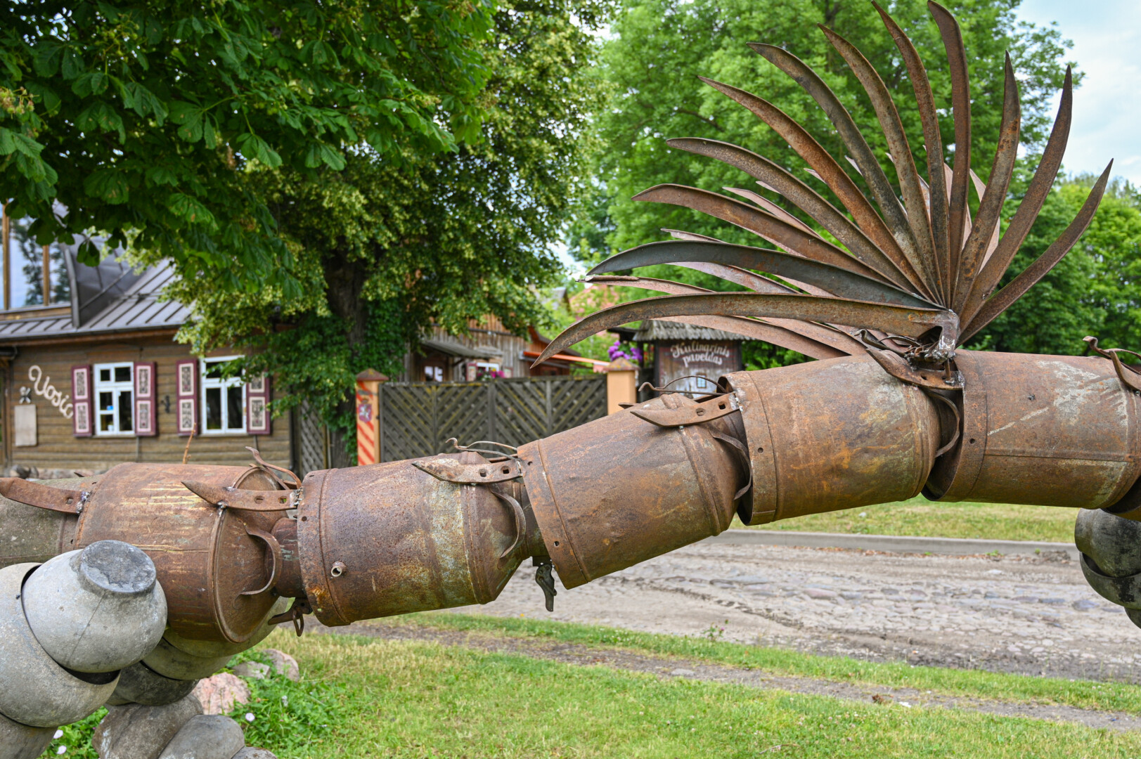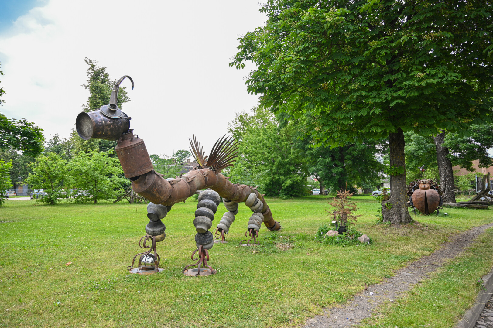 Originalius kūrinius iš metalo laužo ir nereikalingų daiktų kuriantis panevėžietis verslininkas Rimantas Kiela per porą savaičių iš senų bidonų, vadinamųjų sagonų – didelių ketaus puodų be ąsų – ir senų žemės ūkio padargų dalių sumeistravo įspūdingo dydžio drakoną.