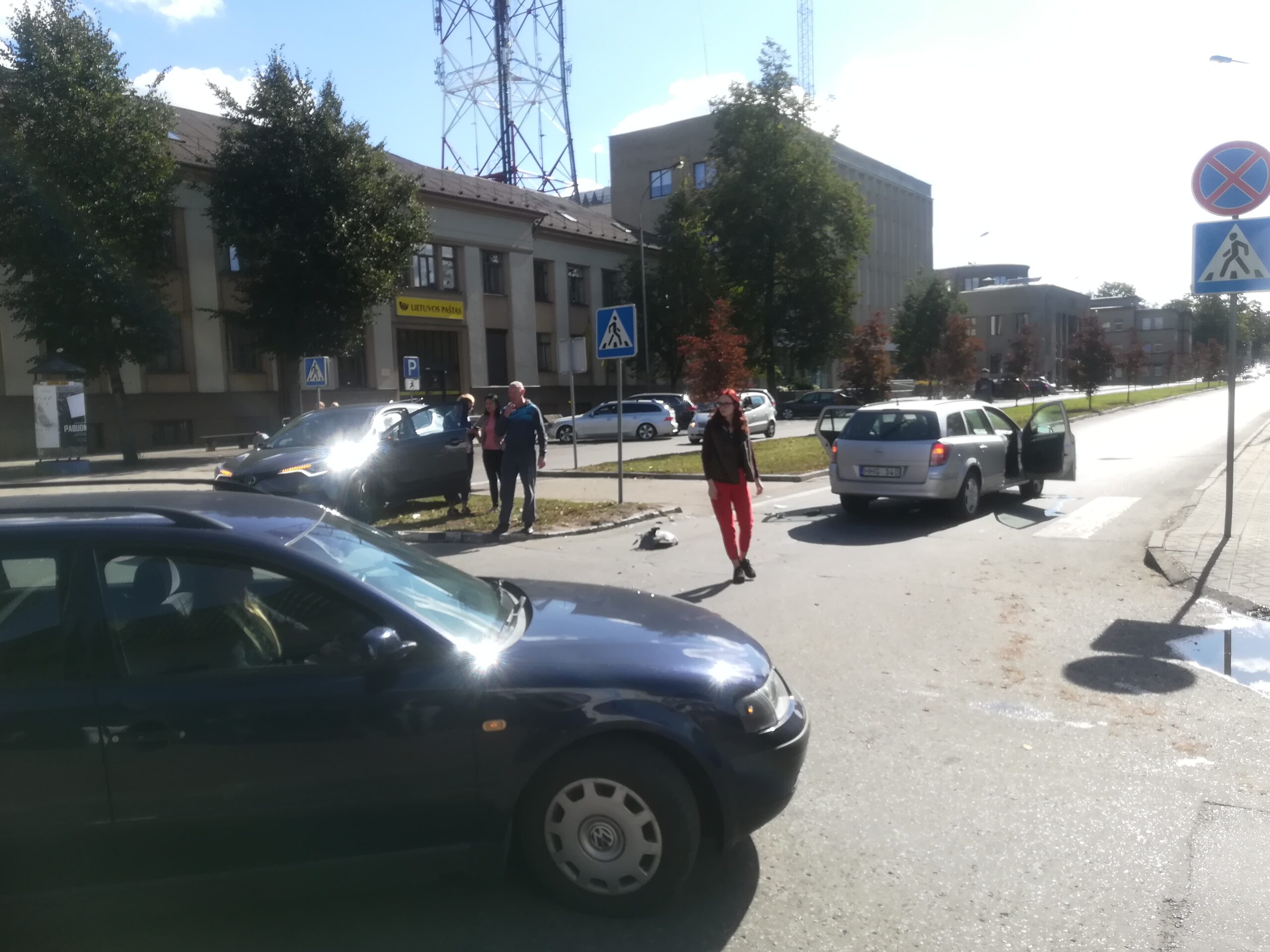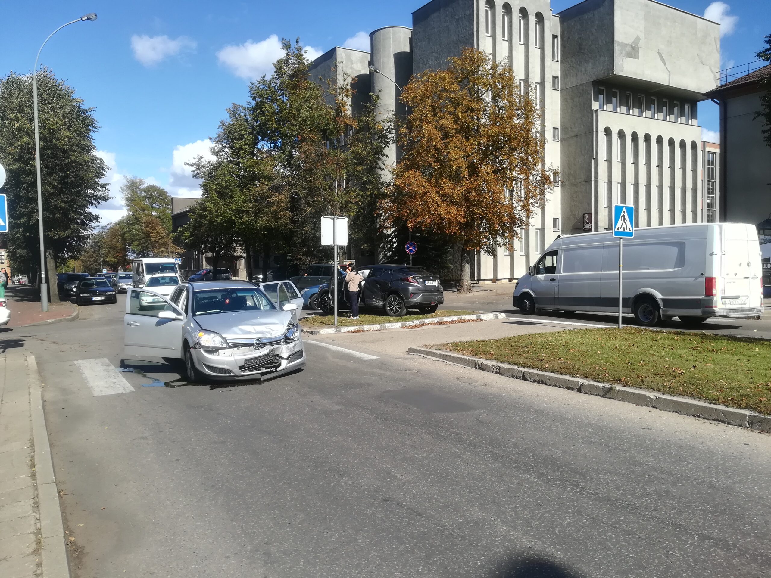 Prie miesto centrinio pašto penktadienio vidurdienį susidūrė du lengvieji automobiliai.
