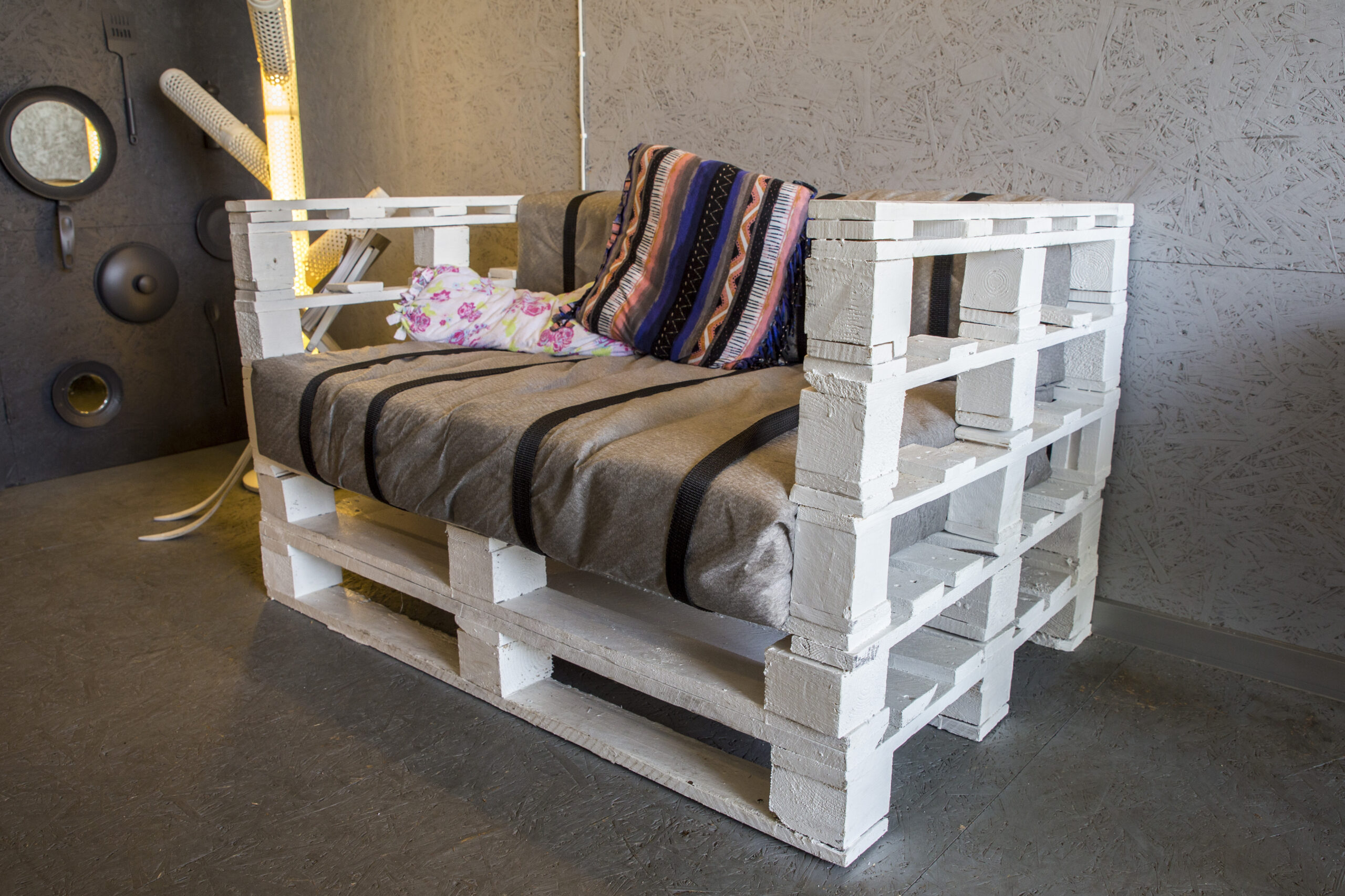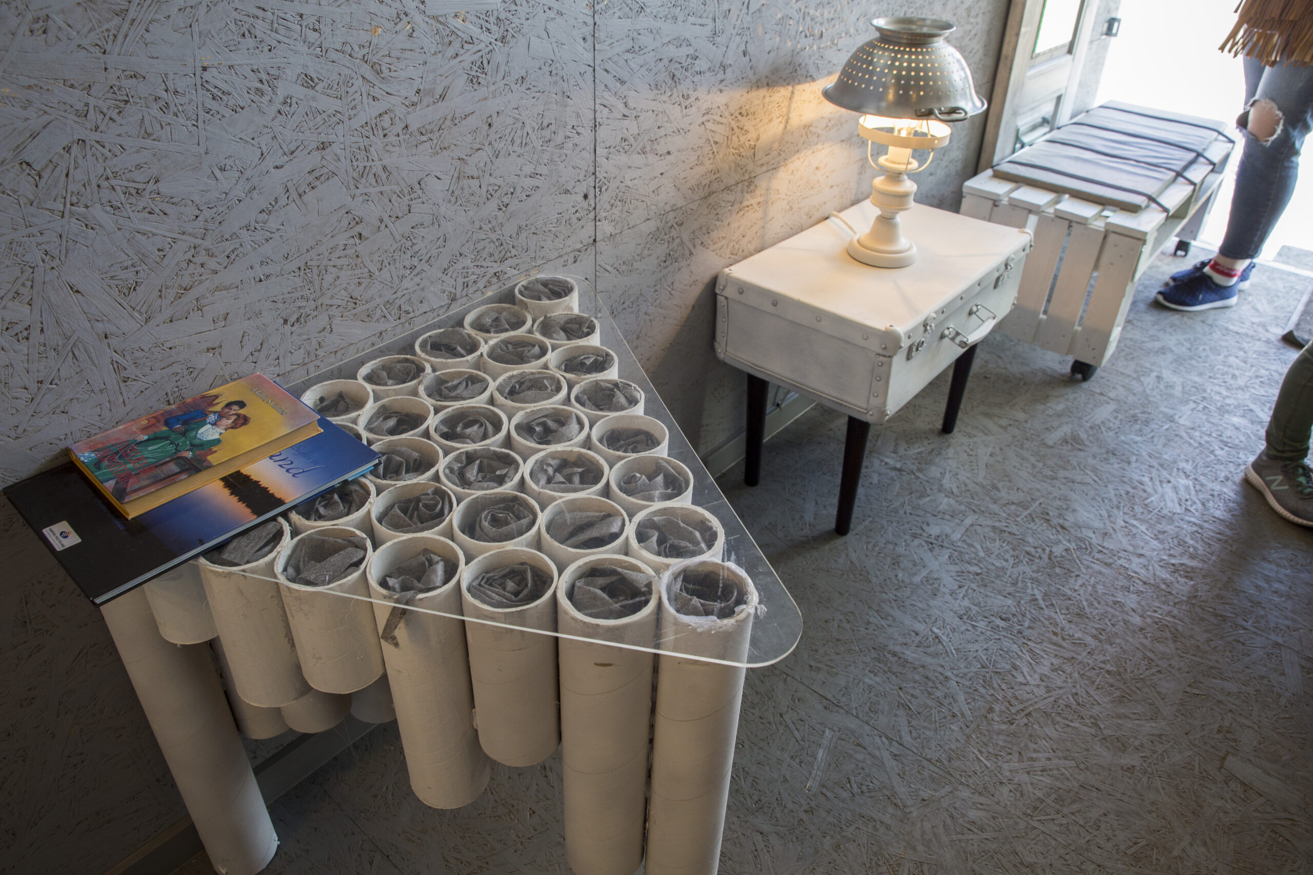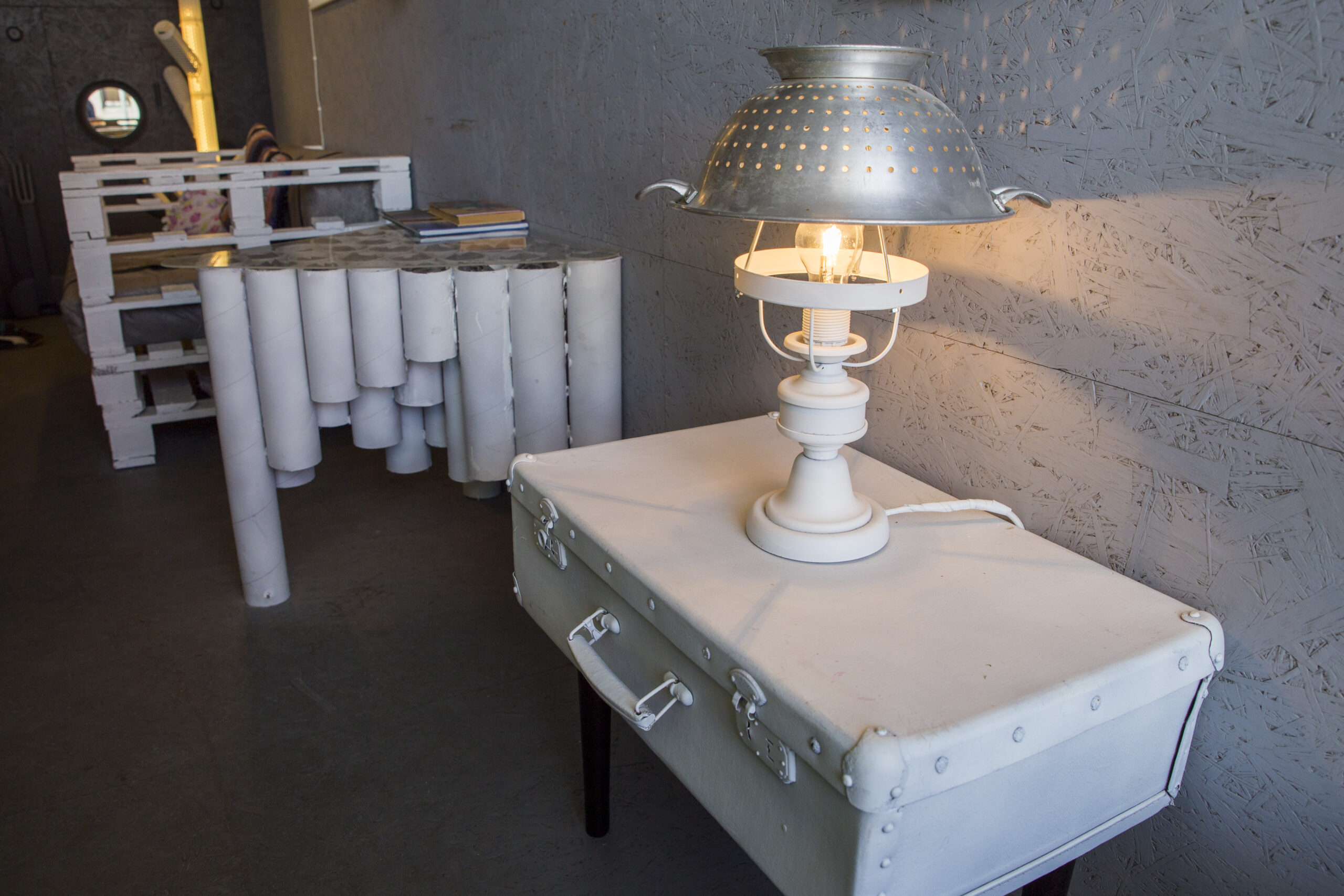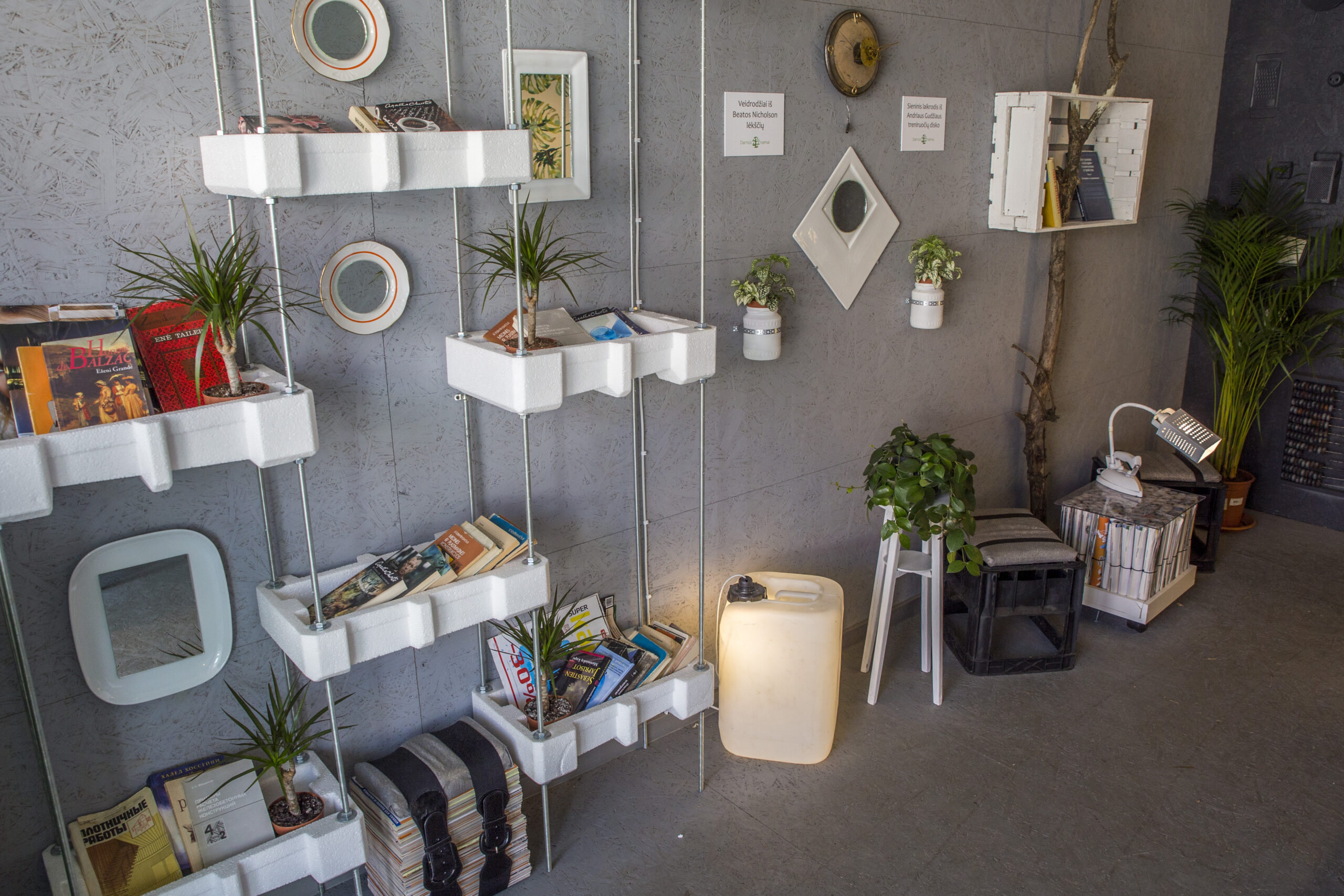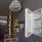 Name galima išvysti ne vieną perdirbtą šviestuvą. Jie pagaminti iš senų arbatinių, bakelių, „tarkų“. Name ant ratų įkurdinta ir iš palečių pagaminta sofa, staliuku ir spintele virtę lagaminai, lentynų funkciją atlieka paprasčiausios putplasčio apsaugos. Ne ką mažiau žavi ir iš dviračio vairo bei sėdynės pagaminta pakaba. Projekto būtinybe patikėjo ir žymi kulinarinių laidų bei knygų autorė Beata Nicholson, kuri atidavė savo senas lėkštes, o iš jų buvo pagaminti veidrodžiai.