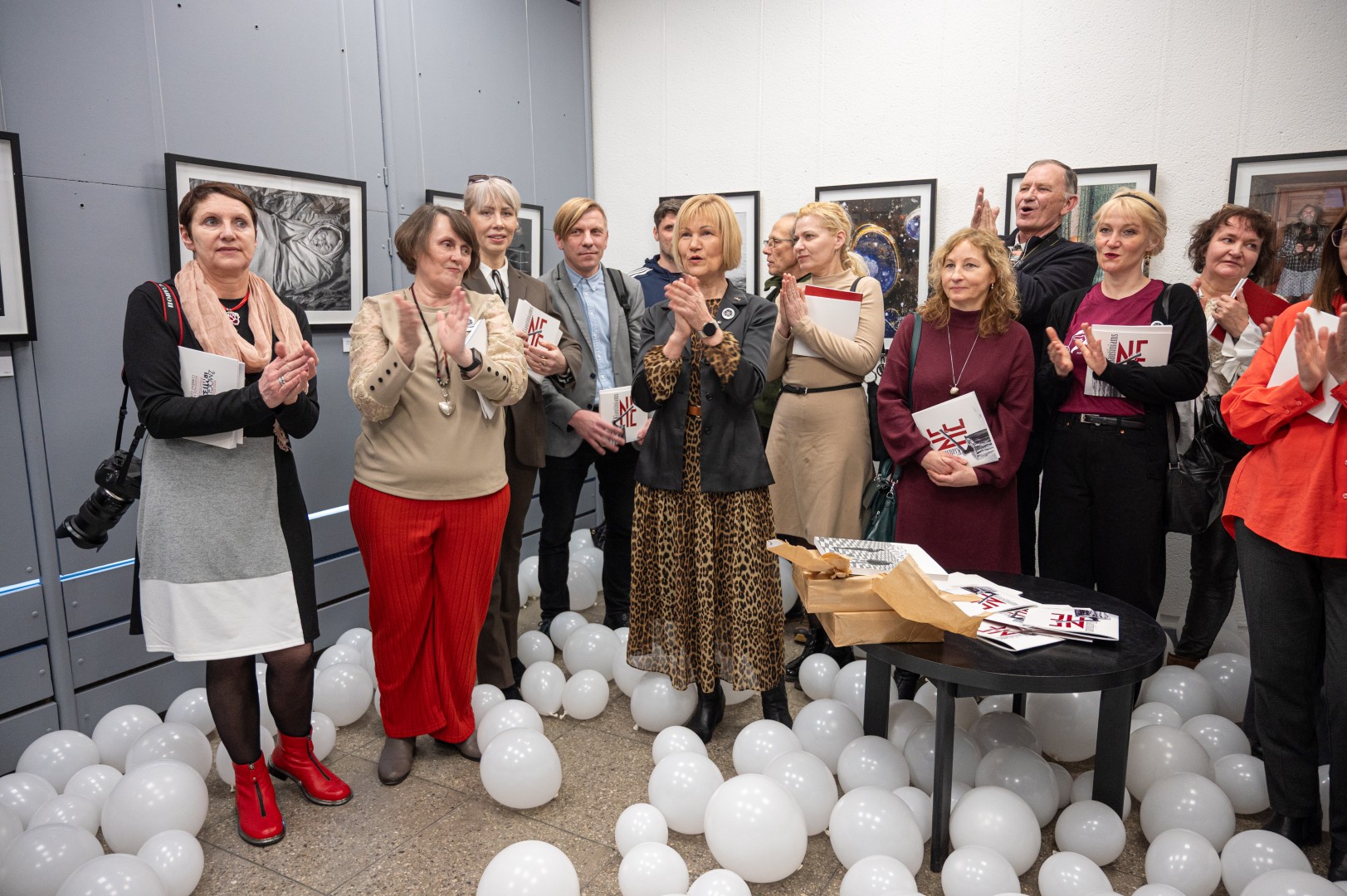 Atėjusieji į parodos atidarymą vos pravėrę Fotografijos galerijos duris pateko į baltais balionais, simbolizuojančiais kiaušinius, užpildytą erdvę.