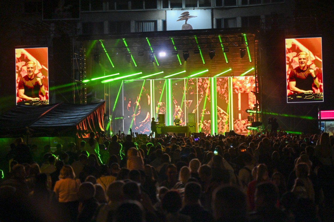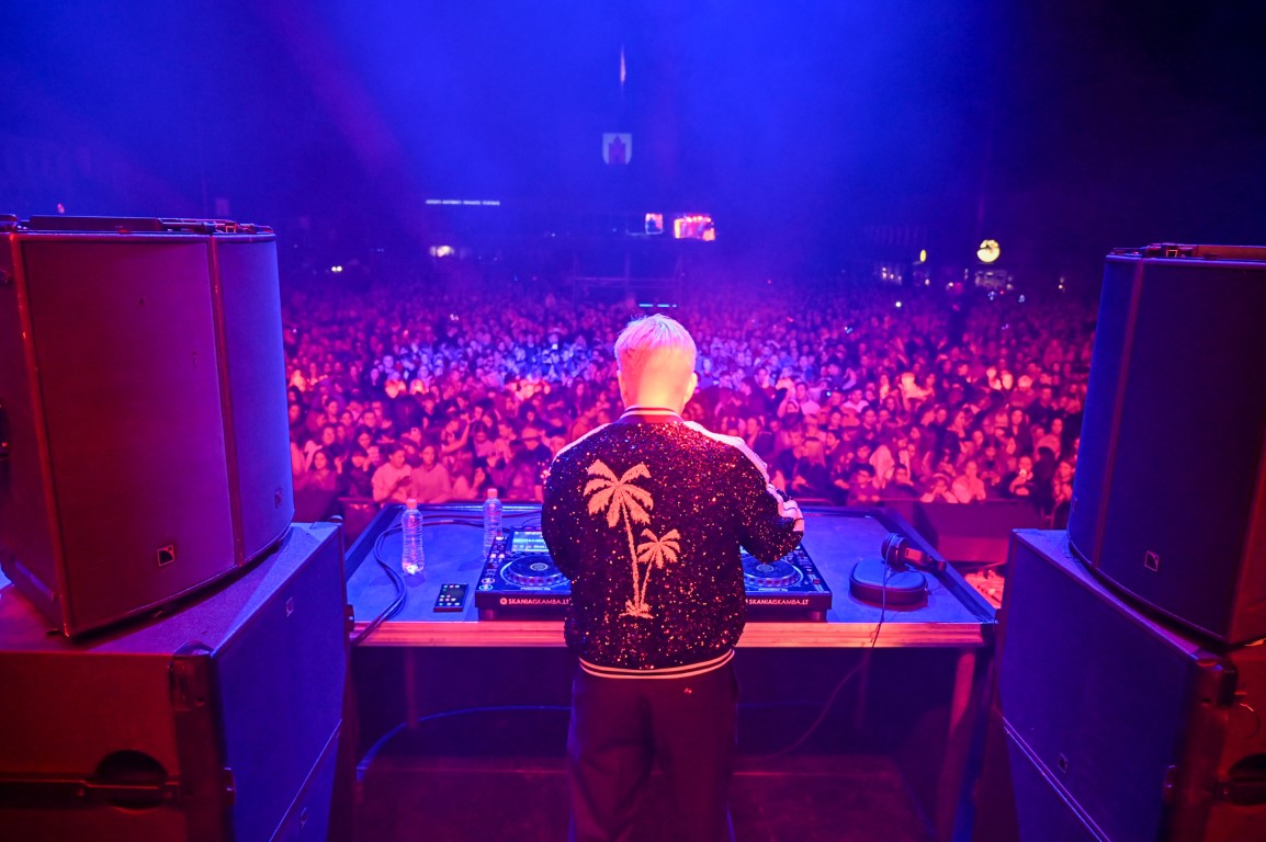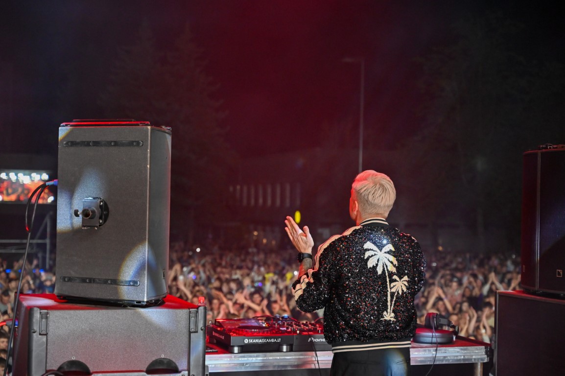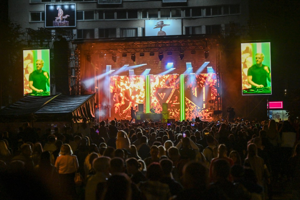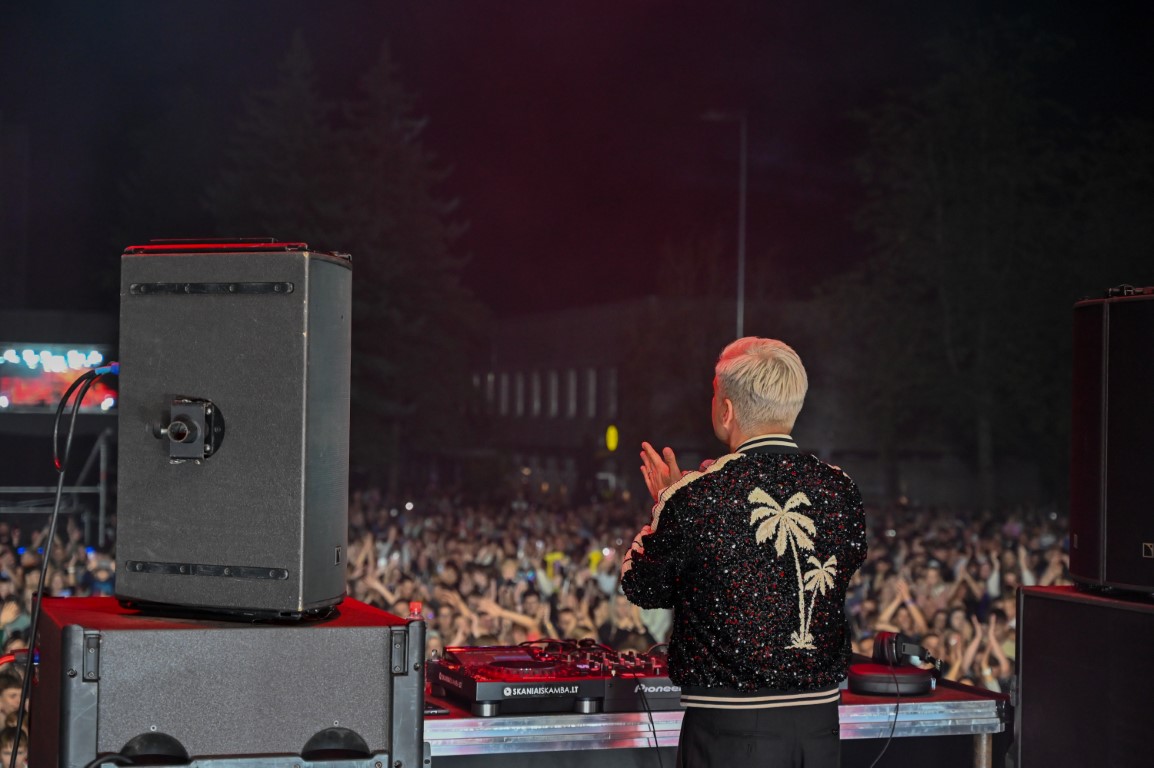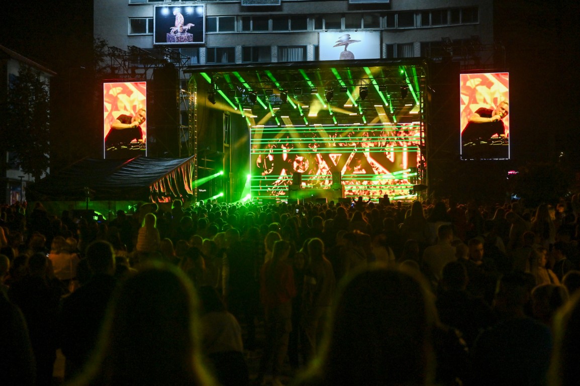 Laisvės aikštėje vos pasibaigus unikaliam muzikos, stiklo, kūnų kalbos ir šviesų šokio performansui „Virsmas“, pagrindinę sceną užėmė DJ Jovani. Jonas Nainys užliejo miesto gimtadienį švenčiančius panevėžiečius ir svečius elektroninės muzikos bangomis.