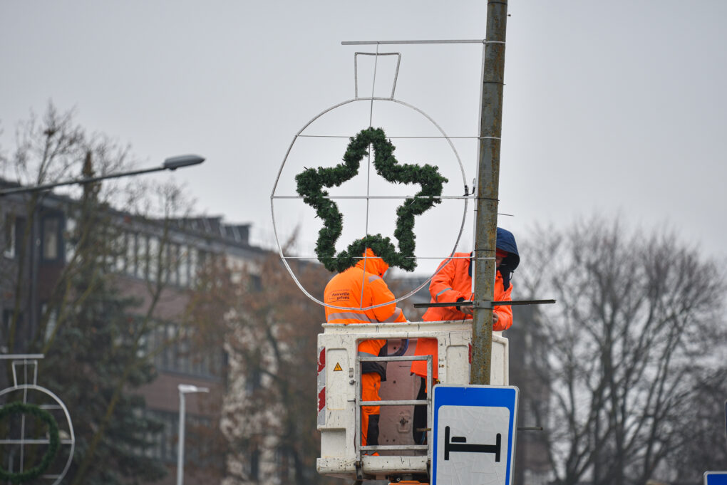 Savivaldybės skelbtą konkursą laimėjusi įmonė „Lumidėja“ jau pradėjo puošti Laisvės aikštę ir centrines gatves. Ant medžių jau siūbuoja balti burbulai.