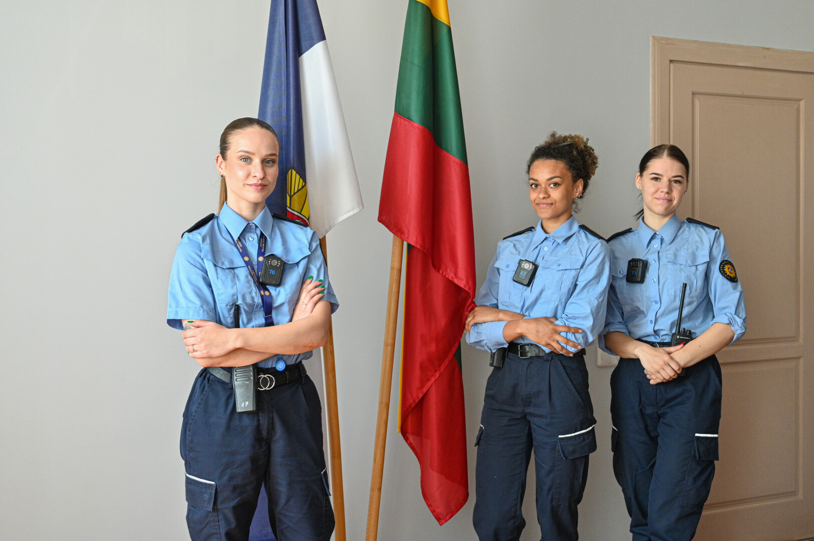 Panevėžietės Egidija Tubytė, Keralaina Juanita Mičel ir zarasiškė Sniežana Zelenkova – vienos iš 13-os studentų, netrukus baigsiančių Kalėjimų tarnybos organizuotus mokymus ir įgysiančių bausmių vykdymo sistemos pareigūno kvalifikaciją.
