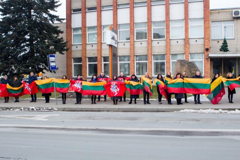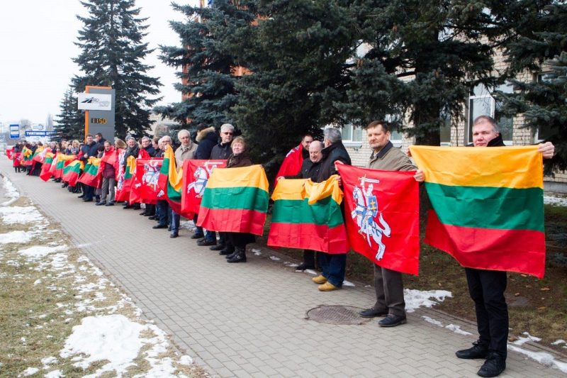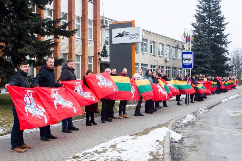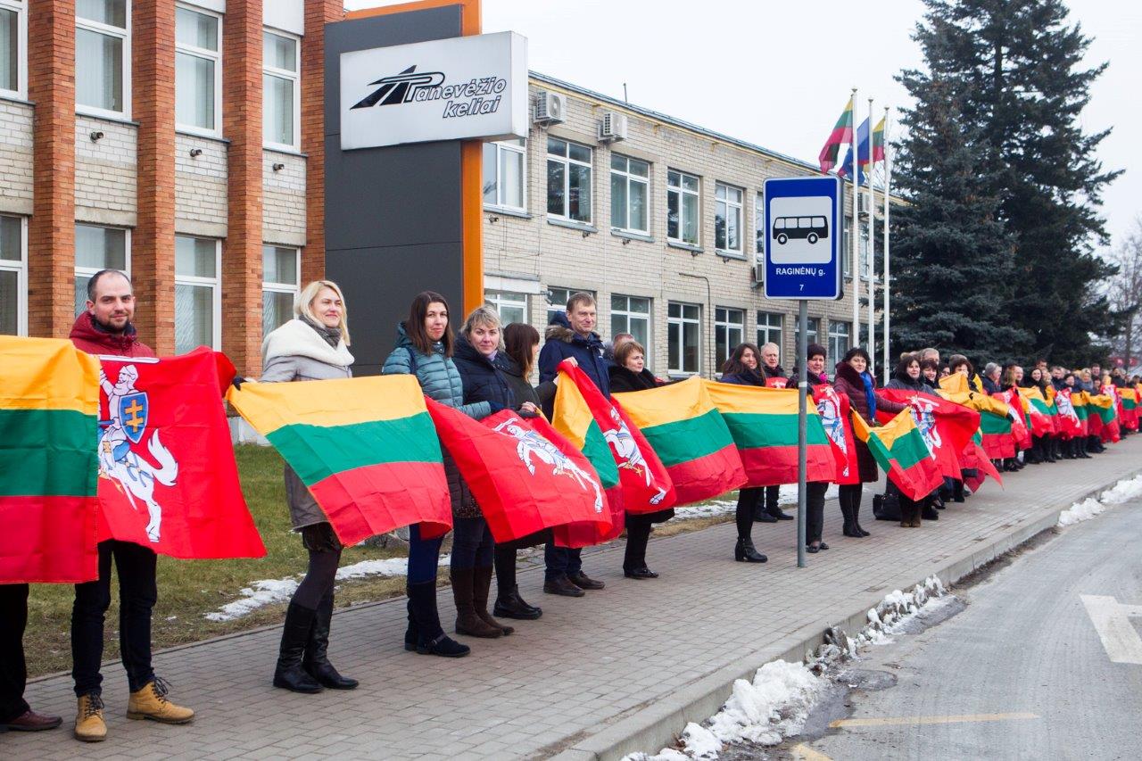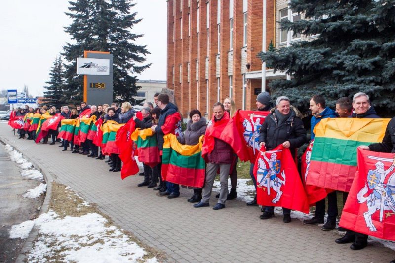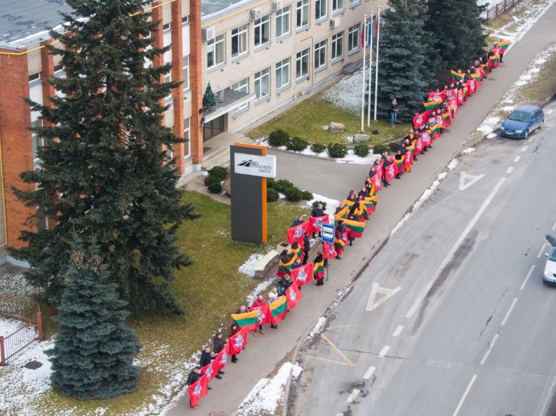 Ketvirtadienio vidurdienį gyva žmonių ir vėliavų grandinė išsidriekė prie bendrovės administracinio pastato S. Kerbedžio gatvėje Panevėžyje.