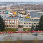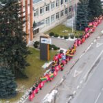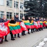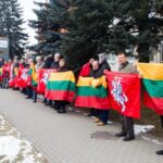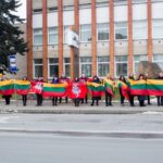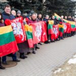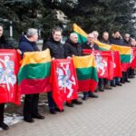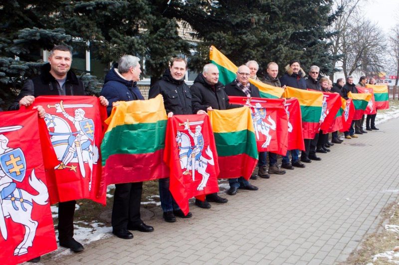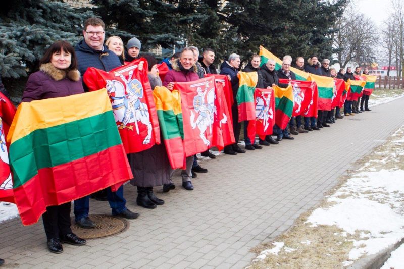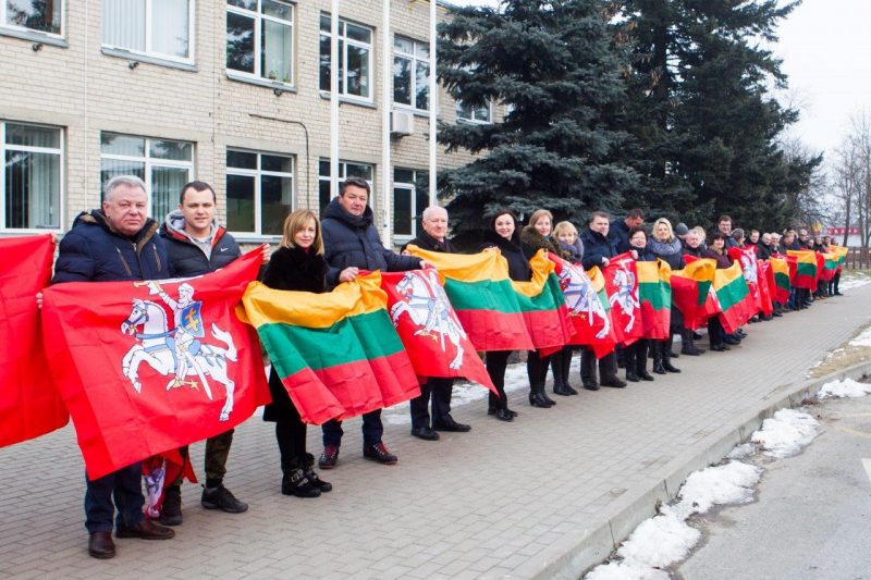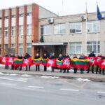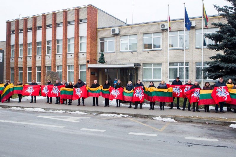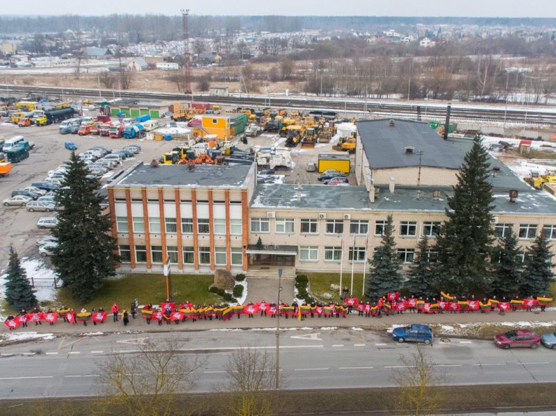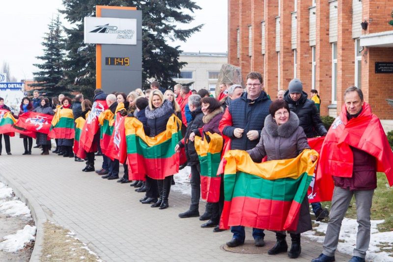 Ketvirtadienio vidurdienį gyva žmonių ir vėliavų grandinė išsidriekė prie bendrovės administracinio pastato S. Kerbedžio gatvėje Panevėžyje.