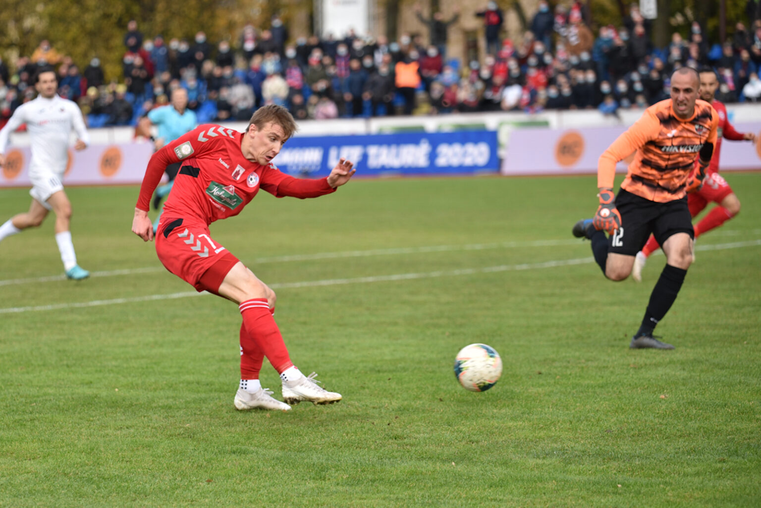 Šiandien „Aukštaitijos“ stadione vyko Hegelmann LFF taurės finalo rungtynės, kuriose susitiko „Panevėžio“ ir Marijampolės „Sūduvos“ klubai. Pagrindinis rungtynių laikas baigėsi lygiosiomis 1:1. Susitikimą po pratęsimo ir baudinių serijos laimėjusi „Panevėžio“ komanda iškovojo ne tik garbingą trofėjų, bet ir kelialapį į UEFA Europos lygos atrankos turnyrą.