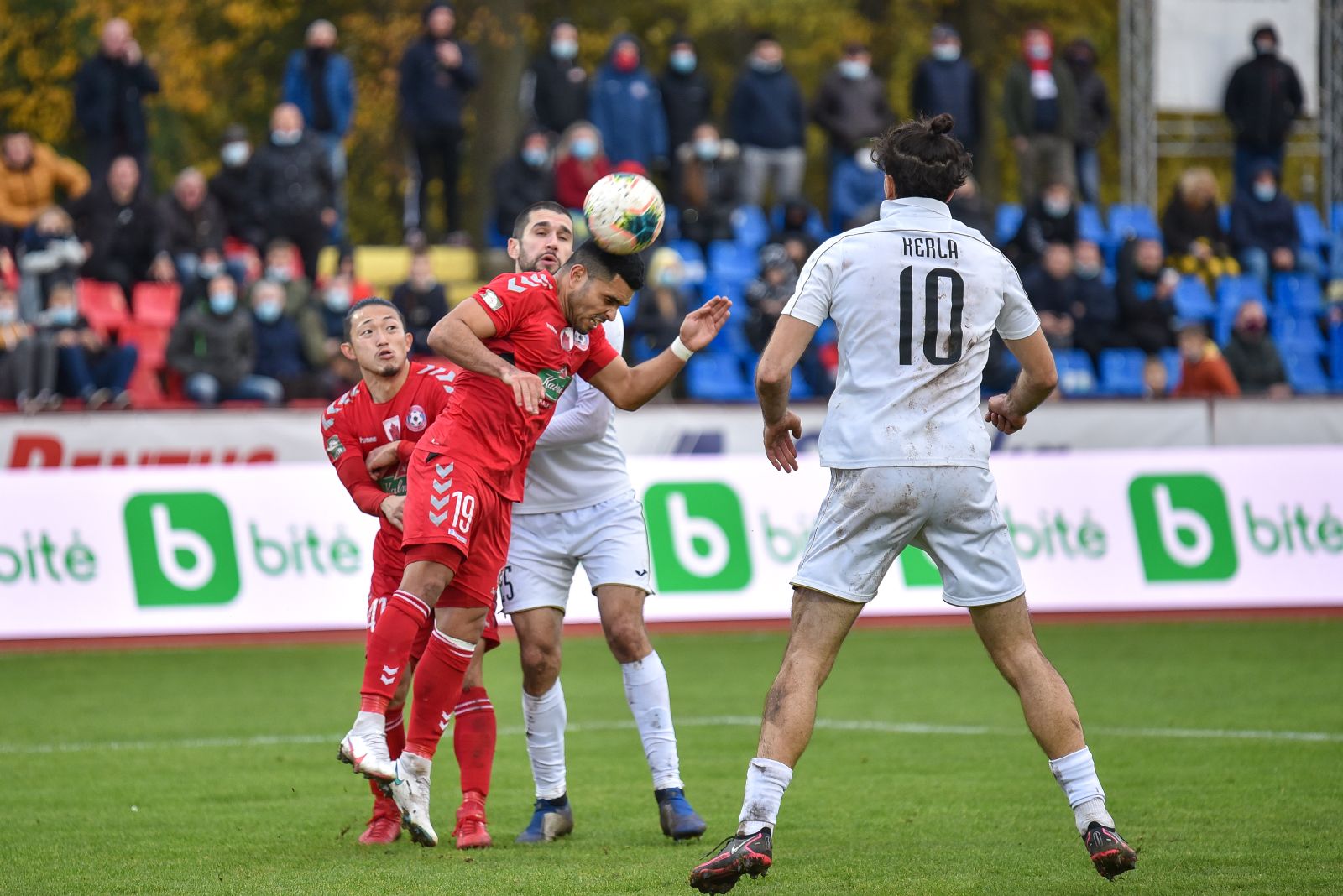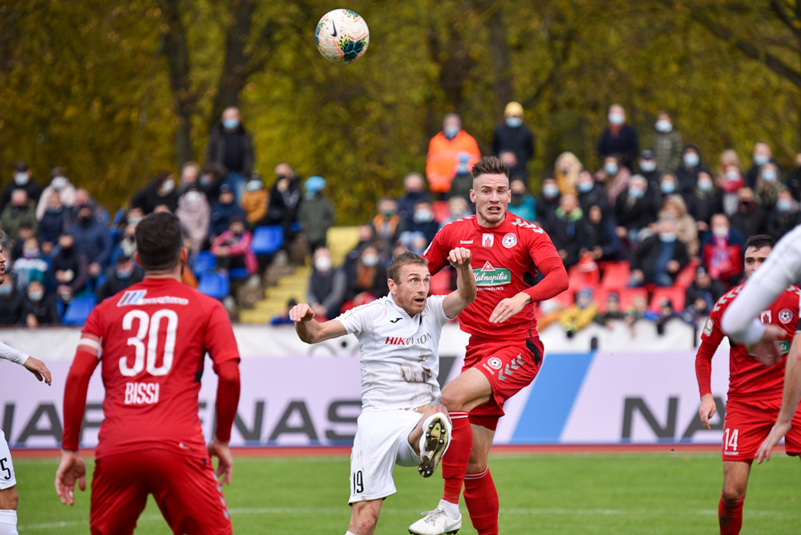 42-ąją susitikimo minutę Matheuso Bissi galva smūgiuotas kamuolys praskriejo visiškai šalia „Sūduvos“ komandos vartų virpsto.