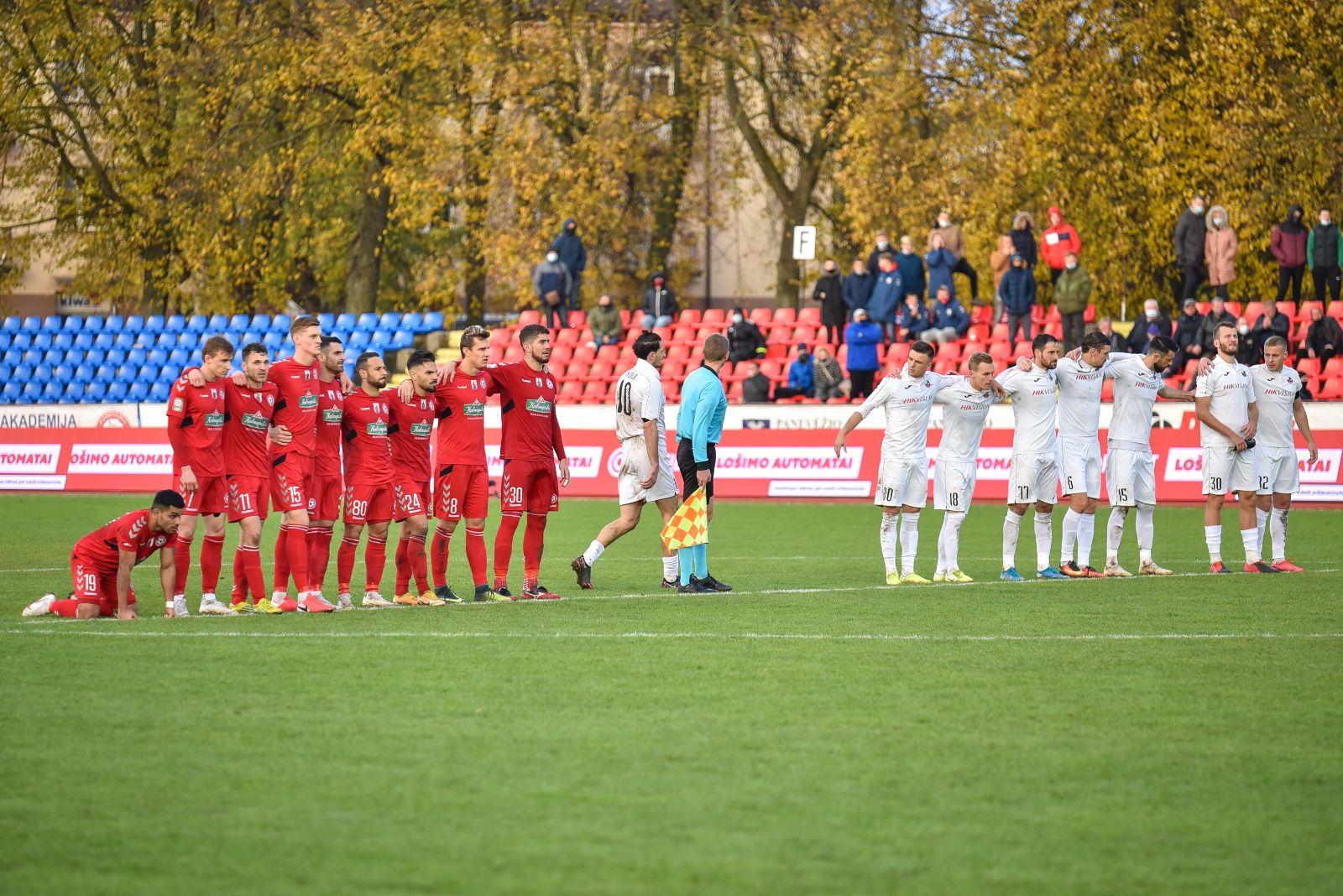 23-ąją mačo minutę aikštės šeimininkams pavyko pelnyti pirmąjį įvartį. Puikiu perdavimu vienas prieš vieną su „Sūduvos“ vartininku išvestas Ernestas Veliulis tiksliu smūgiu pasiuntė kamuolį į svečių vartus.