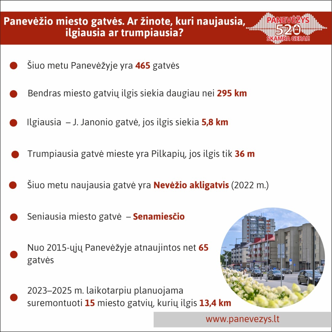 Turbūt ne kiekvienas panevėžietis galėtų įvardinti ilgiausią ar trumpiausią Panevėžio miesto gatvę. O kuri gatvė yra seniausia ir naujausia?