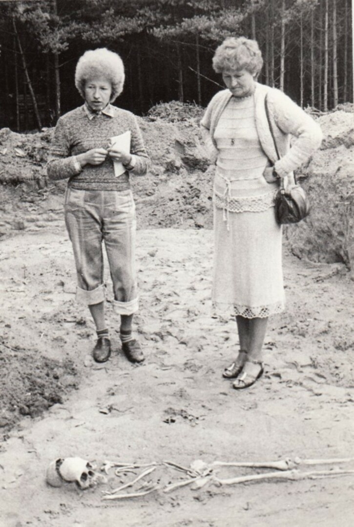 Archeologiniai kasinėjimai. Archeologė Alfreda Petrulienė (kairėje) ir direktorė Jadvyga Rimšelienė. 1983 m. Panevėžio kraštotyros muziejaus archyvų nuotr.