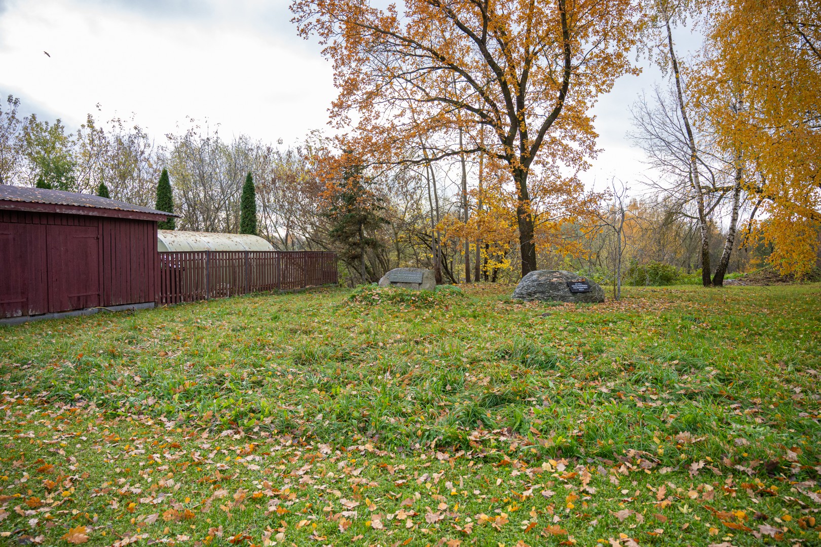 Valstybinės teismo medicinos tarnybos Panevėžio skyriaus pašonėje du paminkliniai akmenys žymi amžino poilsio vietą.