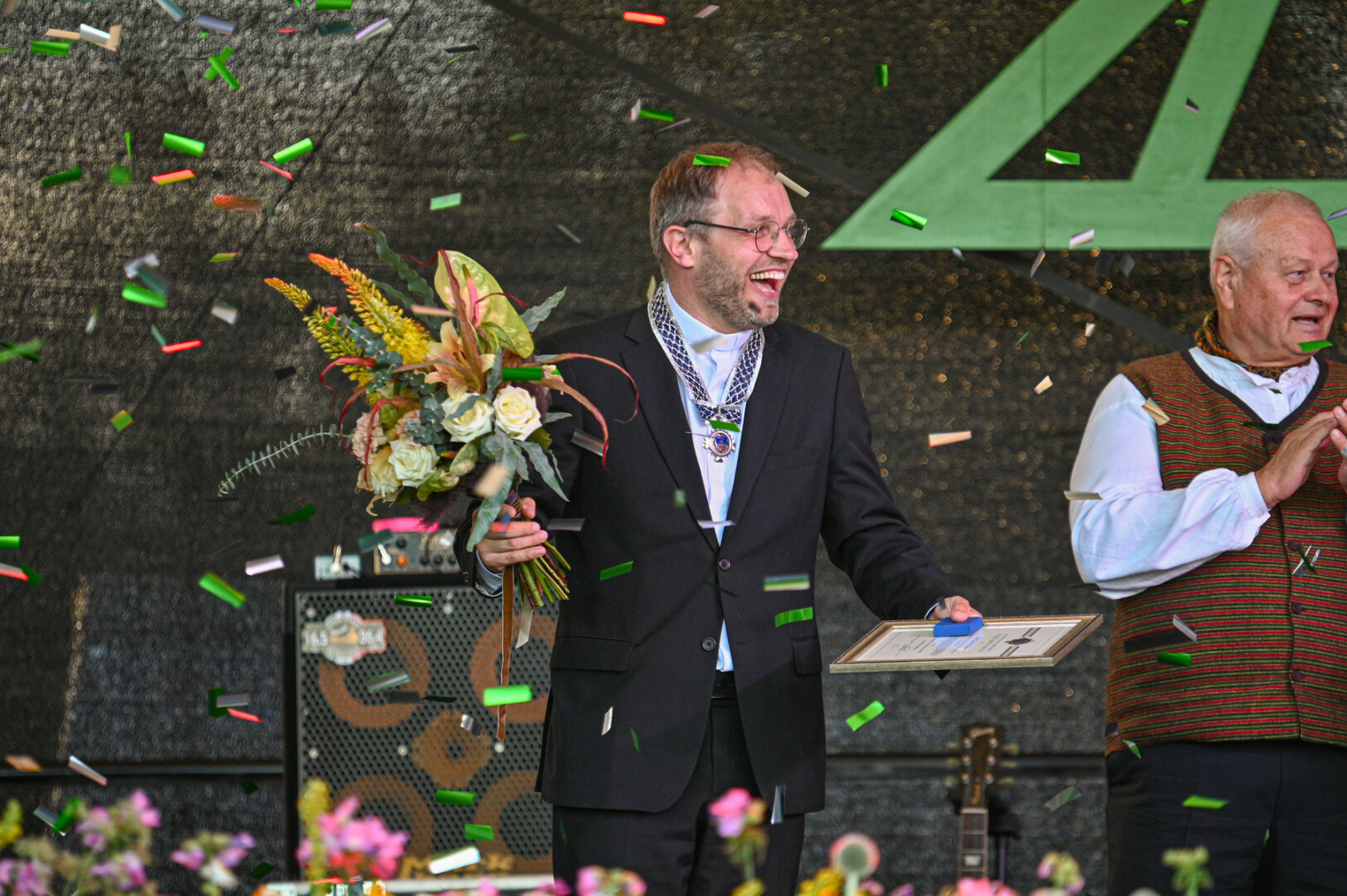 Iškilmingoje ceremonijoje Krekenavos Švč. Mergelės Marijos ėmimo į dangų bazilikos rektoriui kunigui teologijos daktarui Gediminui Jankūnui suteiktas Panevėžio rajono garbės piliečio titulas.