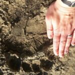 Netikėtas svečias Panevėžio rajone. Vos už kilometro nuo Ėriškių kaimo vietinis gyventojas aptiko rudojo lokio pėdsakus.