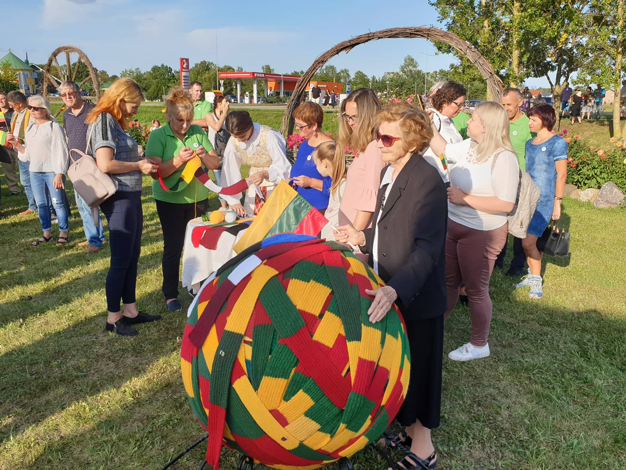 Šįkart Piniavoje gyva žmonių grandinė nusidriekė ne Baltijos kelyje, o pievoje netoli paminklo Baltijos keliui atminti. Rankose tarsi vėliavos suplevėsavo šeši šimtai balionų Lietuvos, Latvijos ir Estijos vėliavų spalvų. O spalvingą minią apjuosė iš gretimo Panevėžio rajono kaimo – Geležių – atvežtas Nepriklausomybės šalikas. Į beveik kilometro ilgio šaliką sumegzta daugiau kaip keturių šimtų rajono gyventojų meilė savo kraštui ir širdies šiluma.
