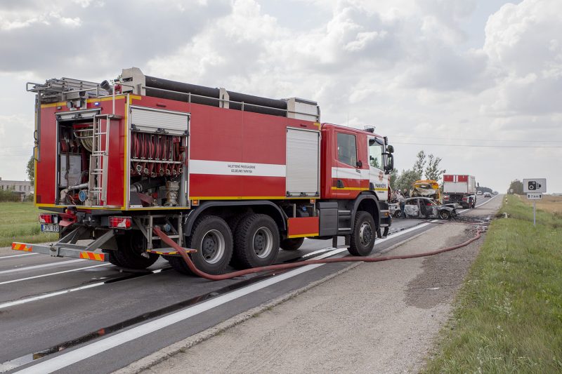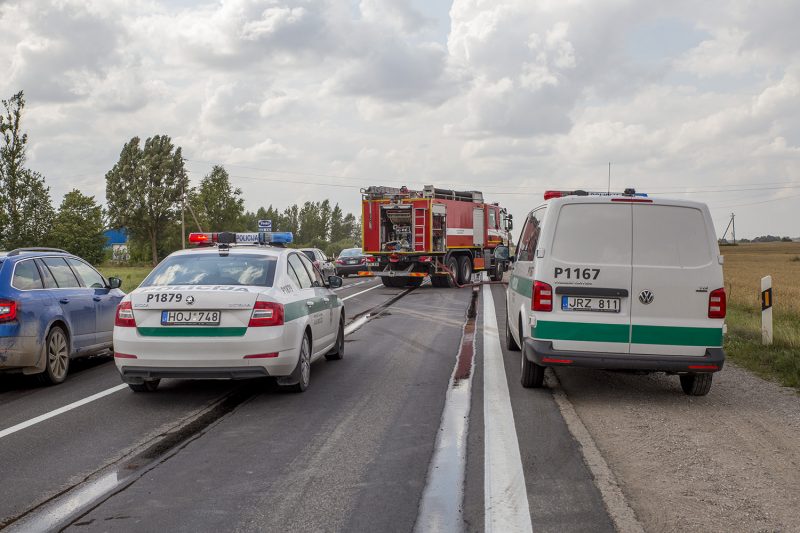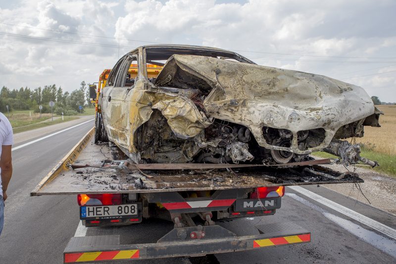Į avariją judriame kelyje pateko „VW Passat” ir BMW automobiliai. Nuo stipraus smūgio kilo gaisras. Sudegė abu automobiliai. Pirminiais duomenimis, per avariją nesunkiai sužalotas vienas žmogus. Kiti avarijos dalyviai spėjo iššokti iš automobilių prieš jiems užsiliepsnojant.
