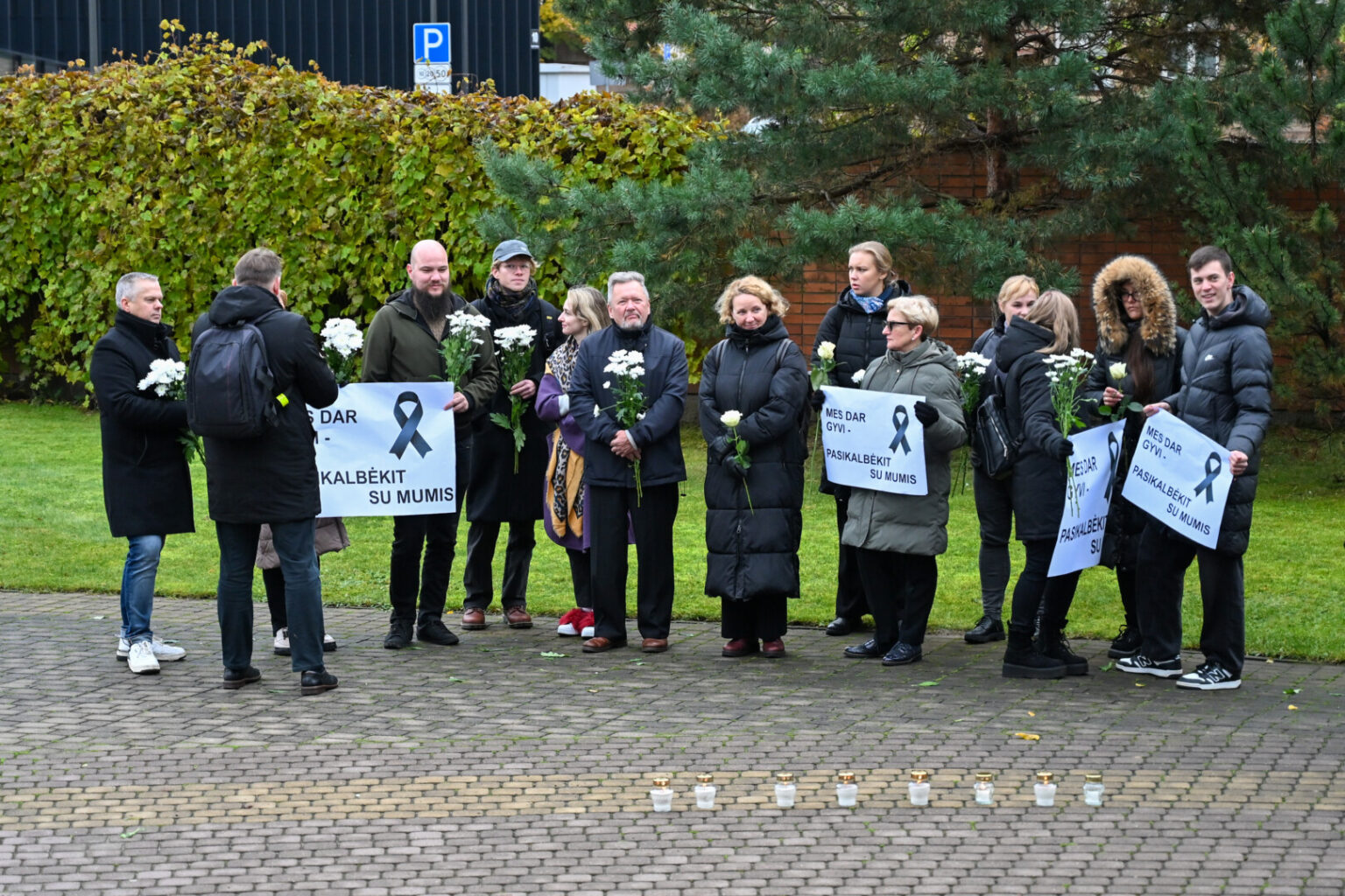 „Mes dar gyvi – pasikalbėkit su mumis“ – skelbė jų laikomi plakatai, pažymėti gedulo juostelėmis.
