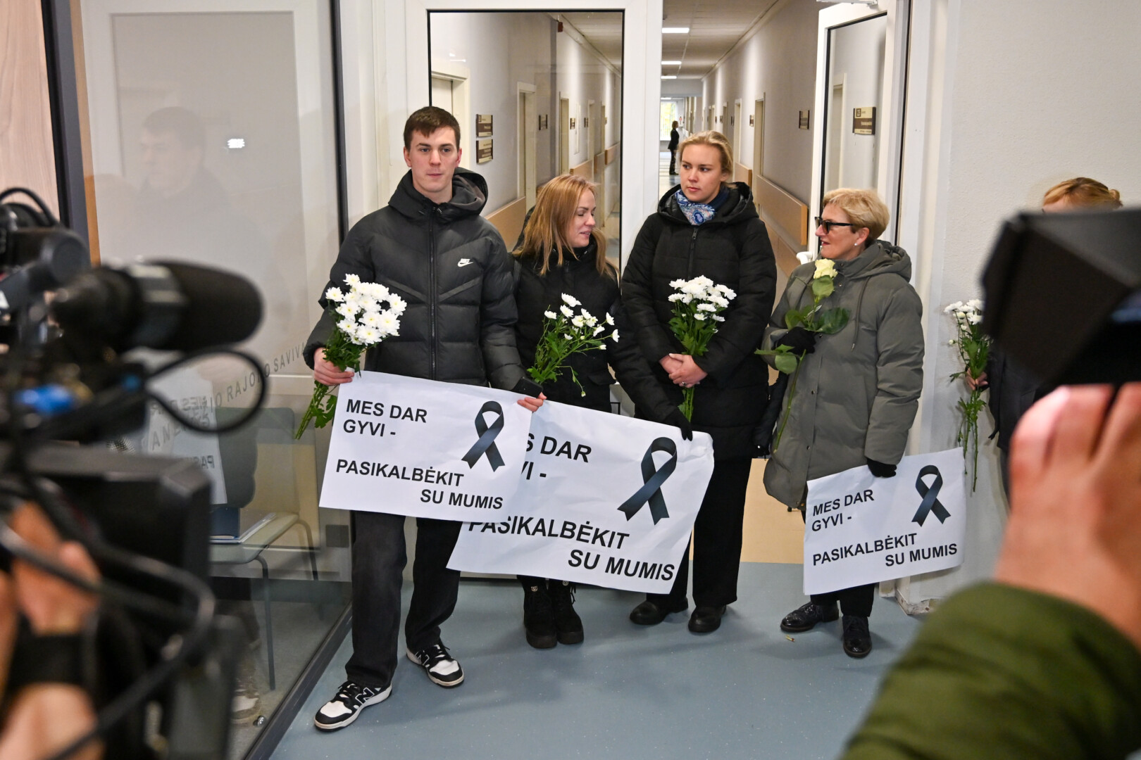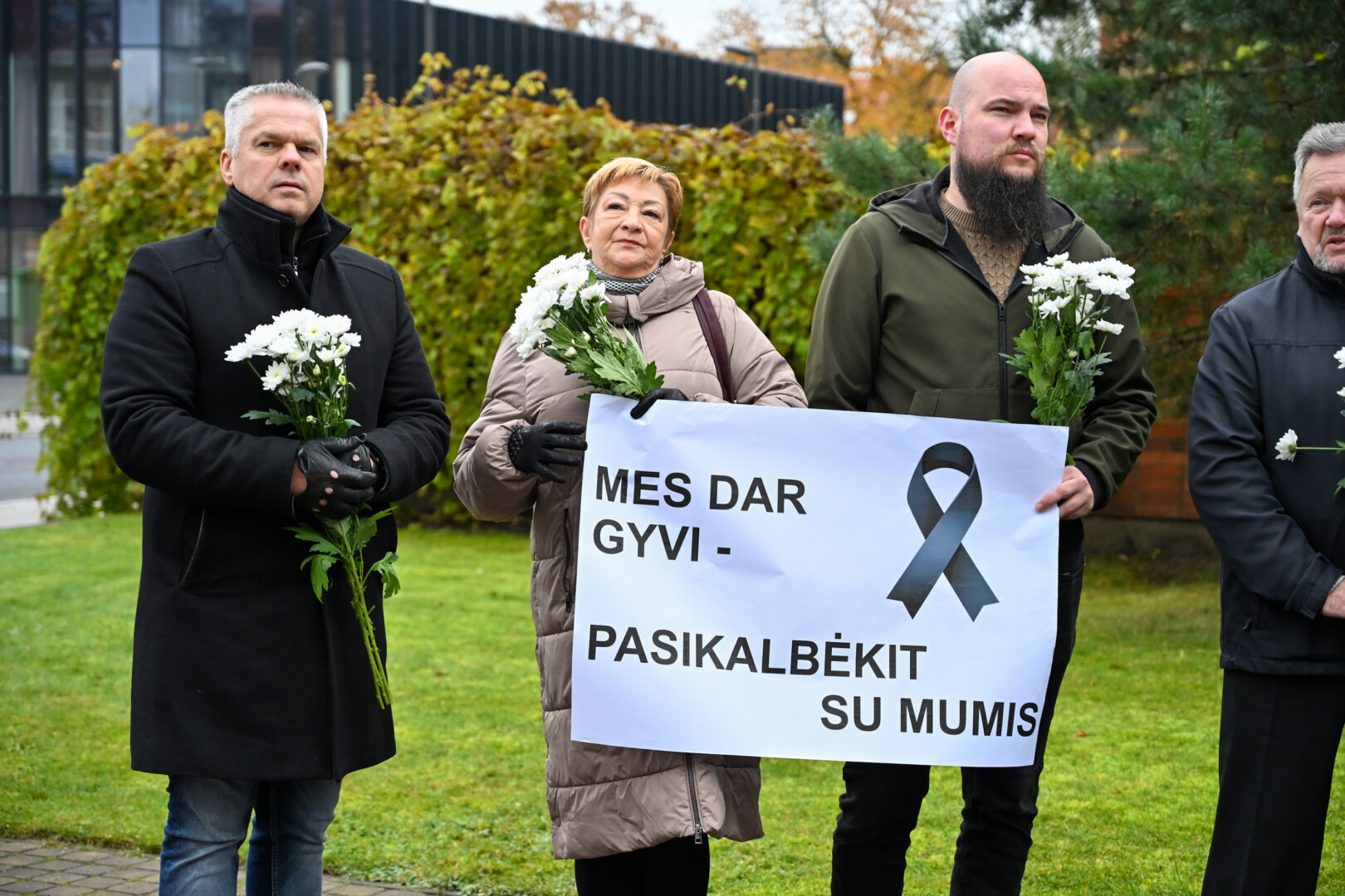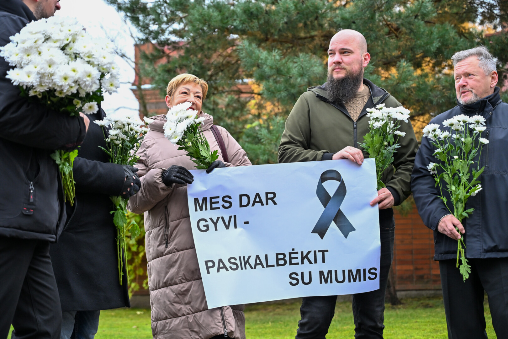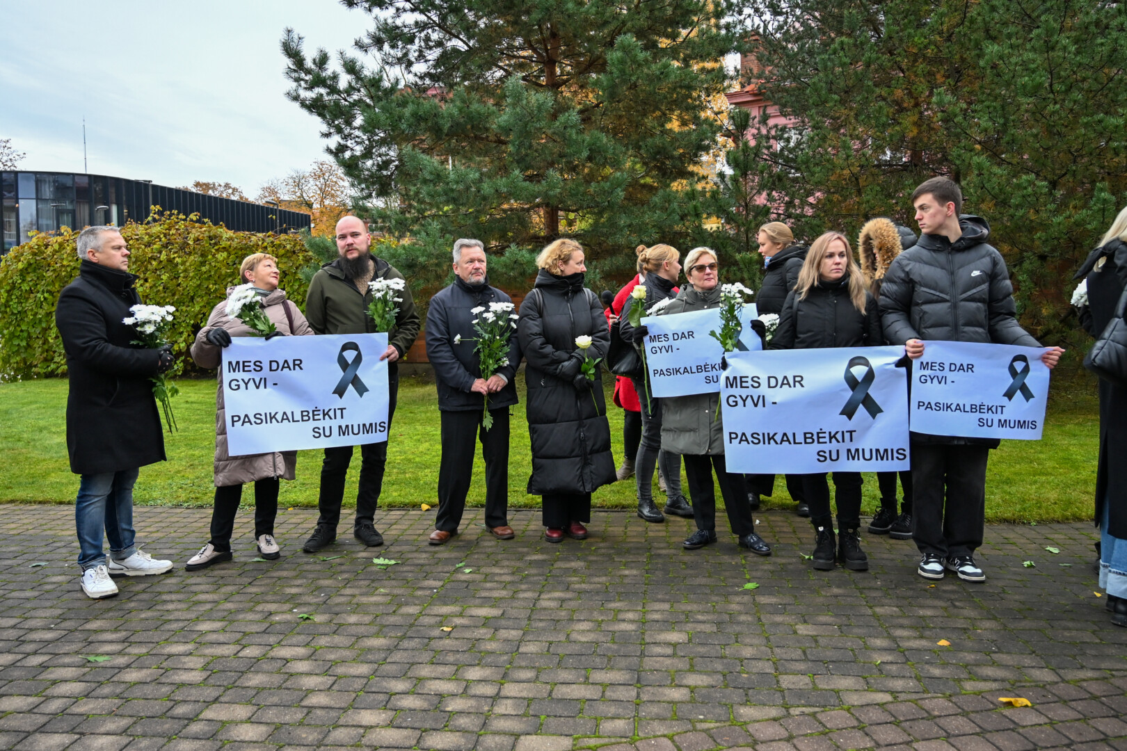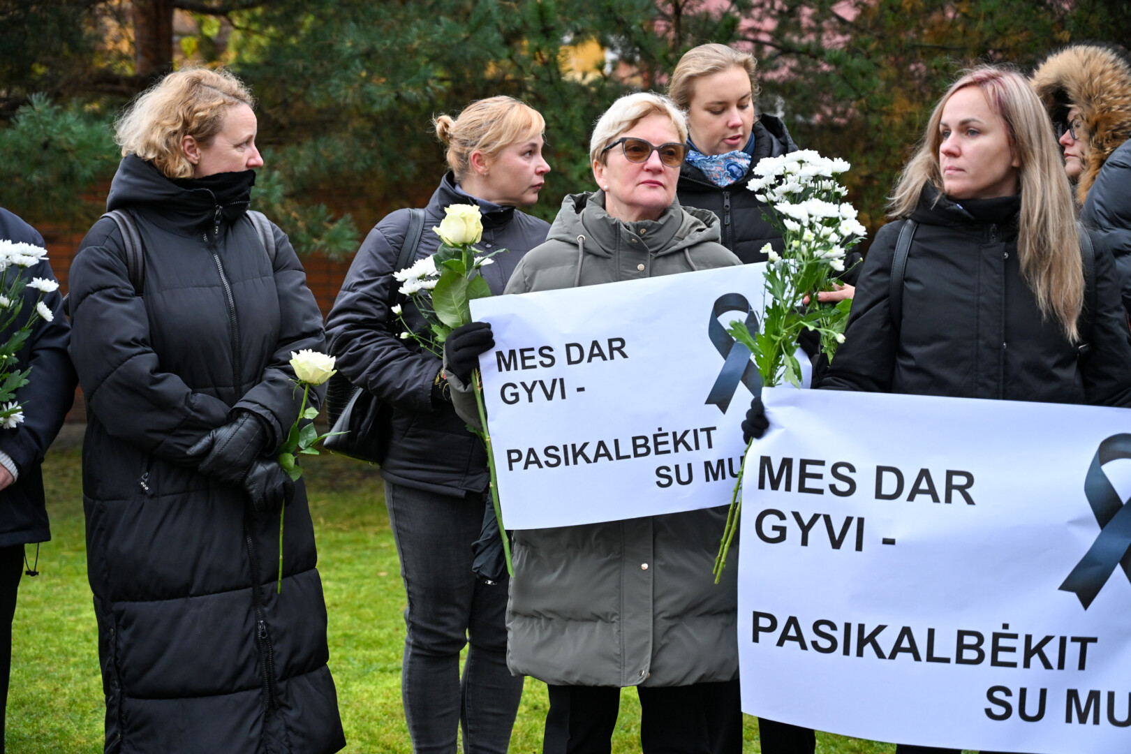 „Mes dar gyvi – pasikalbėkit su mumis“ – skelbė jų laikomi plakatai, pažymėti gedulo juostelėmis.