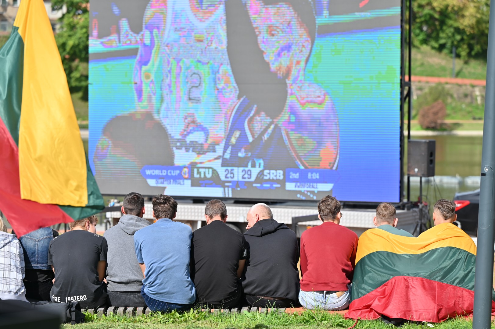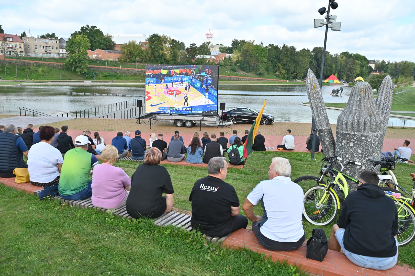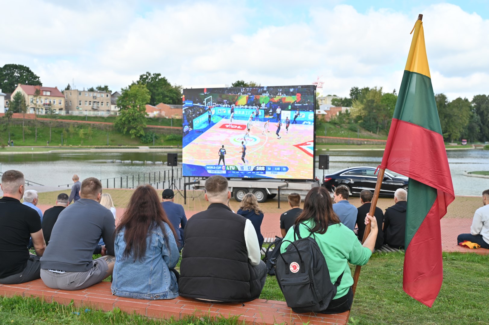 Lietuvos krepšinio rinktinės gerbėjai susirinko į Panevėžio senvagę LED ekrane stebėti tiesioginės transliacijos iš Filipinų sostinės Manilos, kur vykstančio pasaulio čempionato pirmajame ketvirtfinalio susitikime kaunasi Lietuvos ir Serbijos krepšininkai.