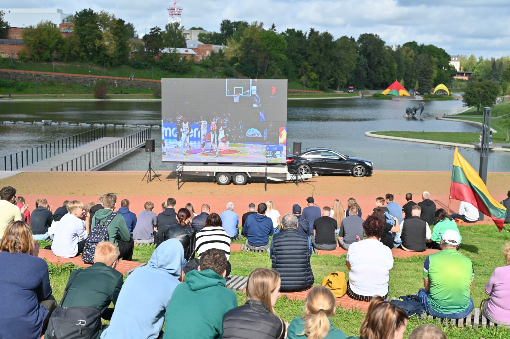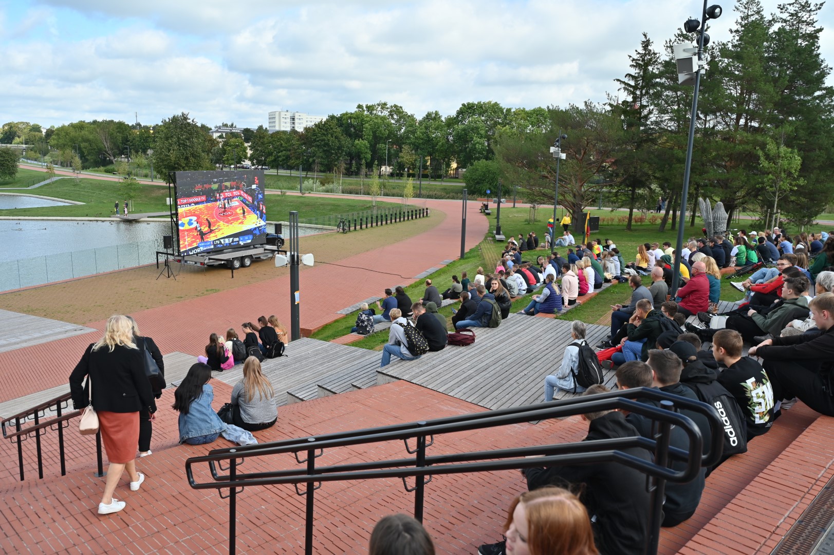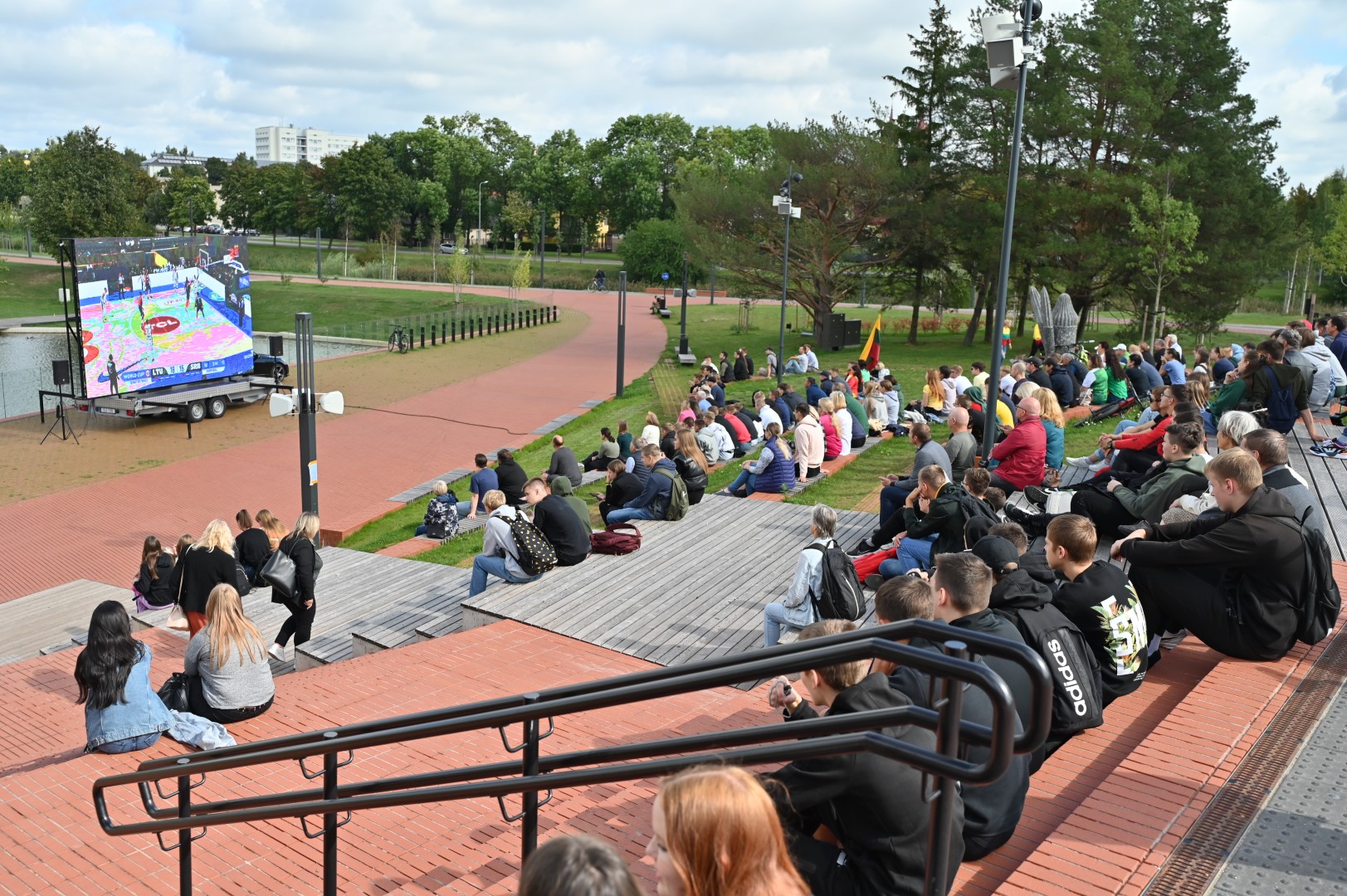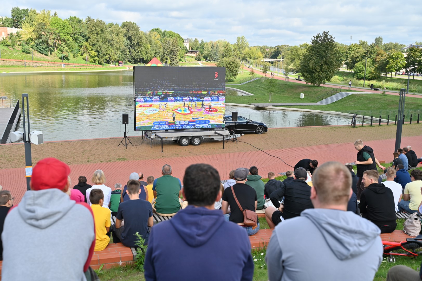Lietuvos krepšinio rinktinės gerbėjai susirinko į Panevėžio senvagę LED ekrane stebėti tiesioginės transliacijos iš Filipinų sostinės Manilos, kur vykstančio pasaulio čempionato pirmajame ketvirtfinalio susitikime kaunasi Lietuvos ir Serbijos krepšininkai.