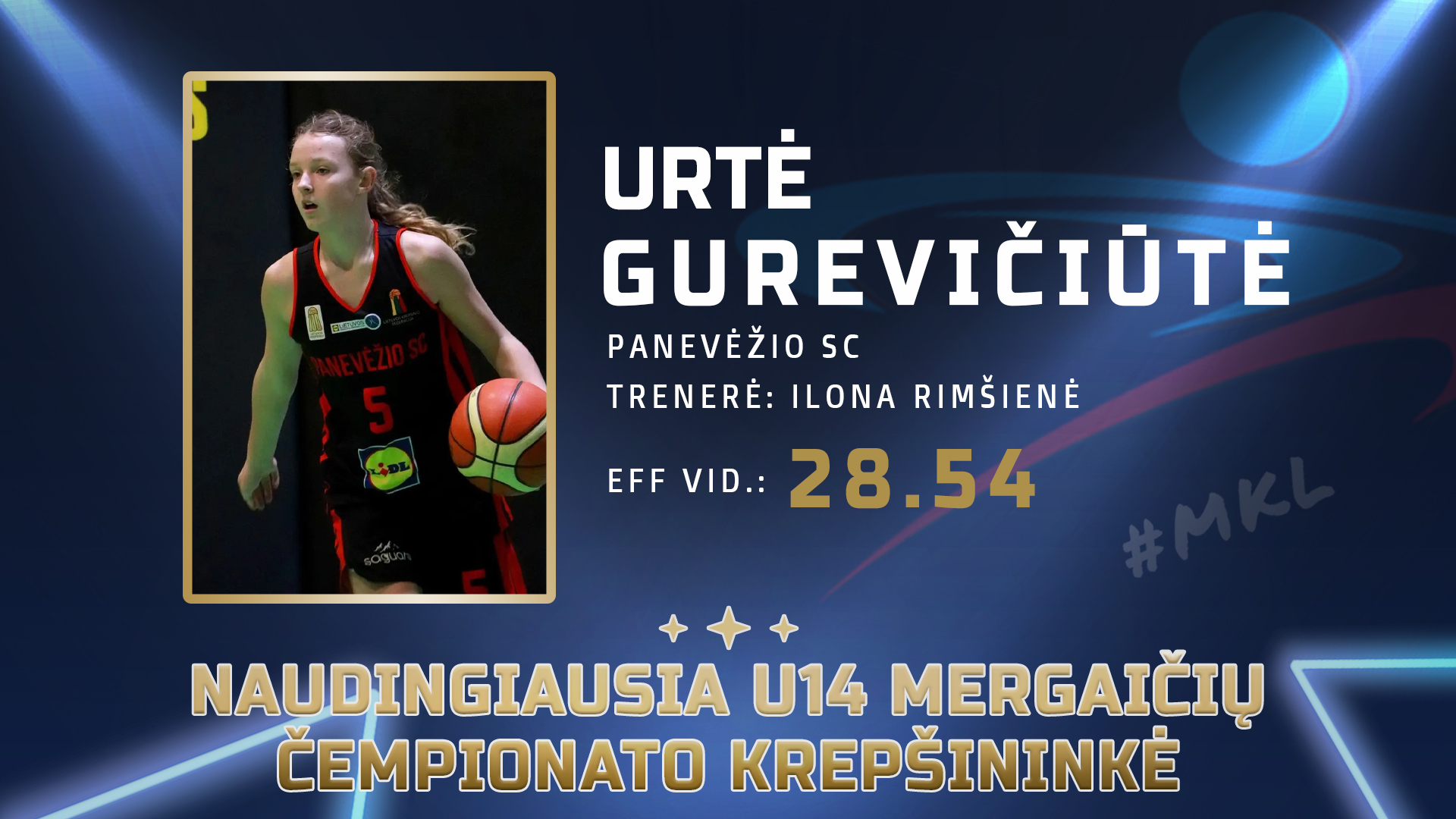 Naudingiausia U14 mergaičių čempionato krepšininke išrinkta Urtė Gurevičiūtė. Trenerės Ilonos Rimšienės ugdytinė surinko 28,54 naudingumo balus.
