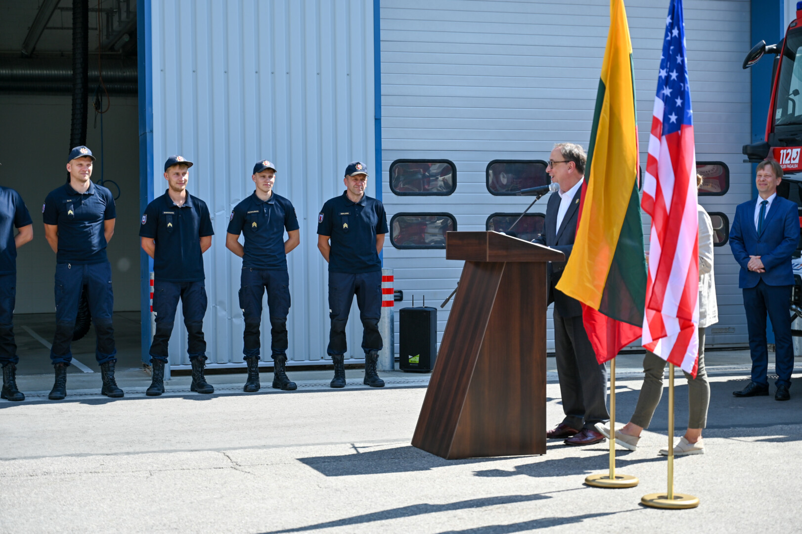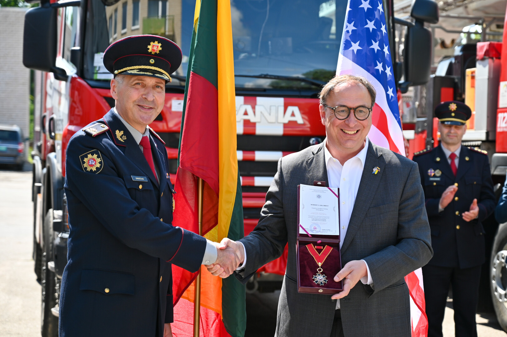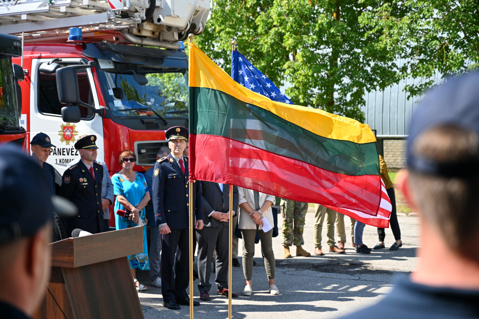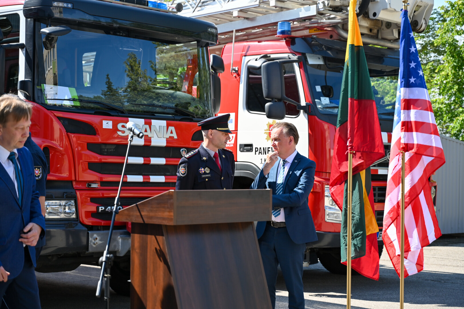 Jis dėkojo JAV Ginkluotųjų pajėgų Europoje vadovybei, skyrusiai lėšų civilinį saugumą besistengiantiems užtikrinti Panevėžio ugniagesiams, bei ambasadoriui, koordinavusiam tų lėšų pasisavinimą.