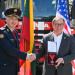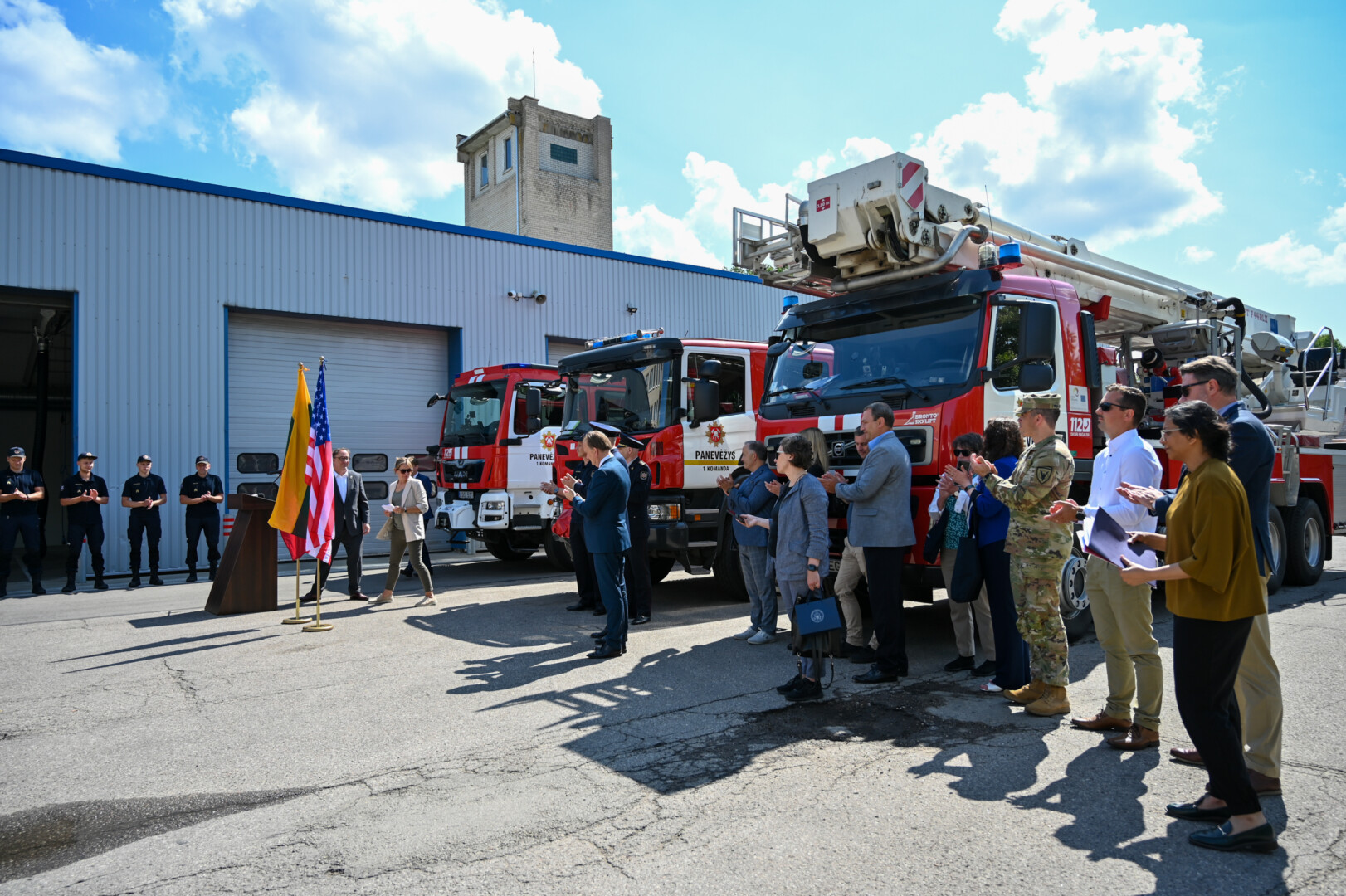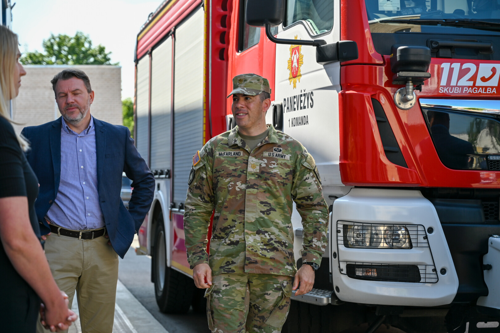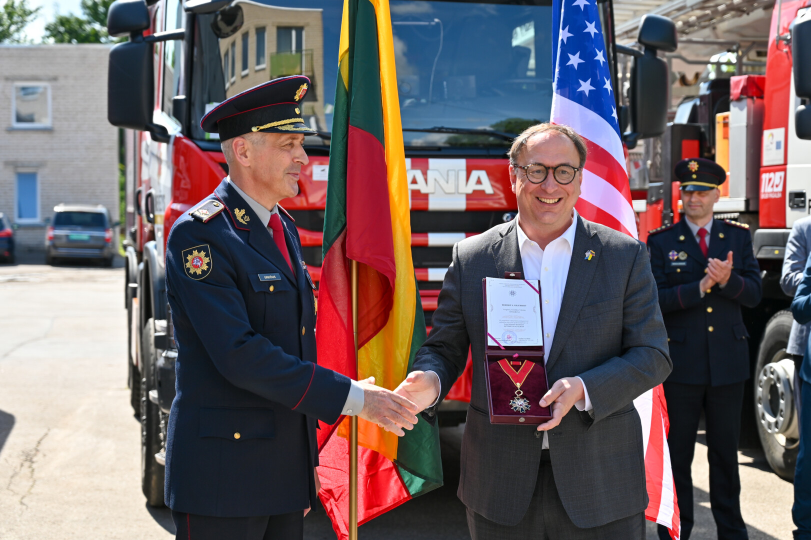 Jis dėkojo JAV Ginkluotųjų pajėgų Europoje vadovybei, skyrusiai lėšų civilinį saugumą besistengiantiems užtikrinti Panevėžio ugniagesiams, bei ambasadoriui, koordinavusiam tų lėšų pasisavinimą.