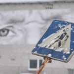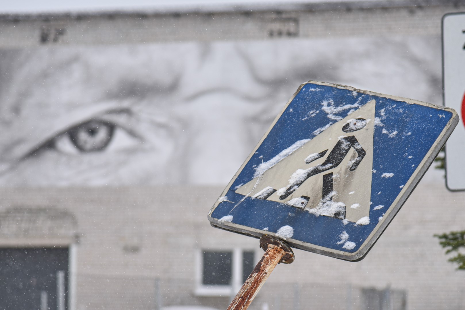 Man labiausiai įstrigo, bet parodoje nėra. Dar stovi senovinis šviečiantis (išjungtas) kelio ženklas prieš šiuolaikinį daugiabutį…