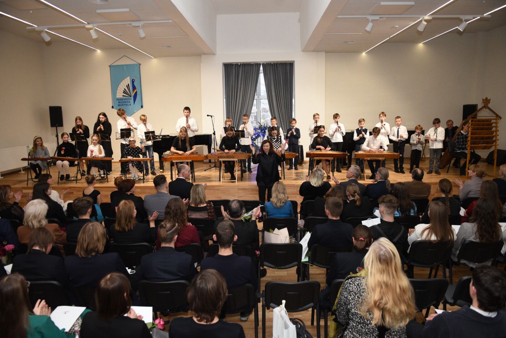 Muzikos mokykloje surengtoje šventėje pasveikinti Panevėžio mokiniai, 2021-2022 m. mokslo metais pasiekę geriausius rezultatus dalykinėse olimpiadose, konkursuose ir kituose renginiuose mokslo bei meno srityse.
