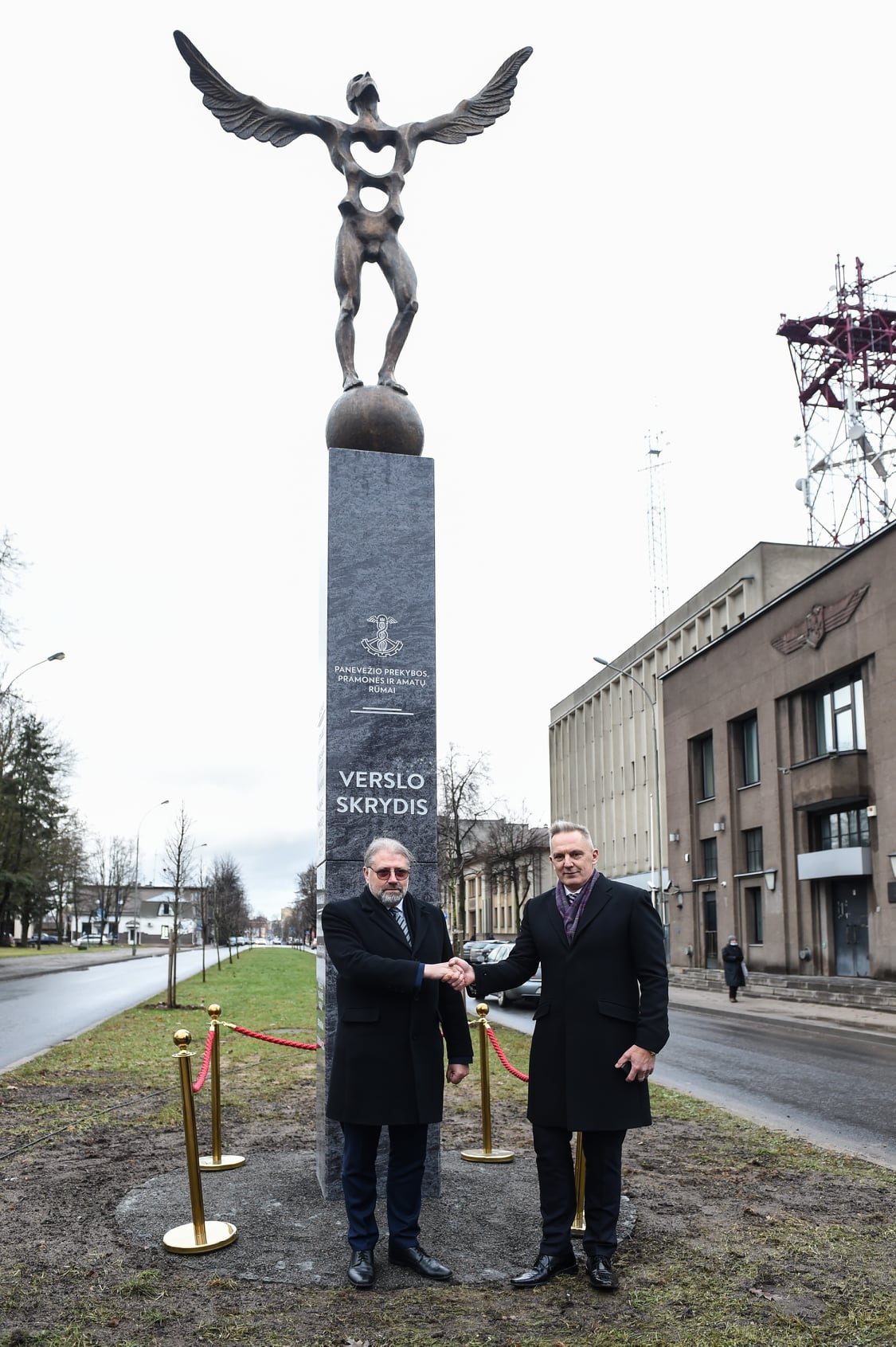 Šiandien Panevėžio miesto meras Rytis Račkauskas dalyvavo žinomo skulptoriaus Vytauto Tallat-Kelpšos sukurtos skulptūros „Verslo skrydis“ atidengimo ceremonijoje.