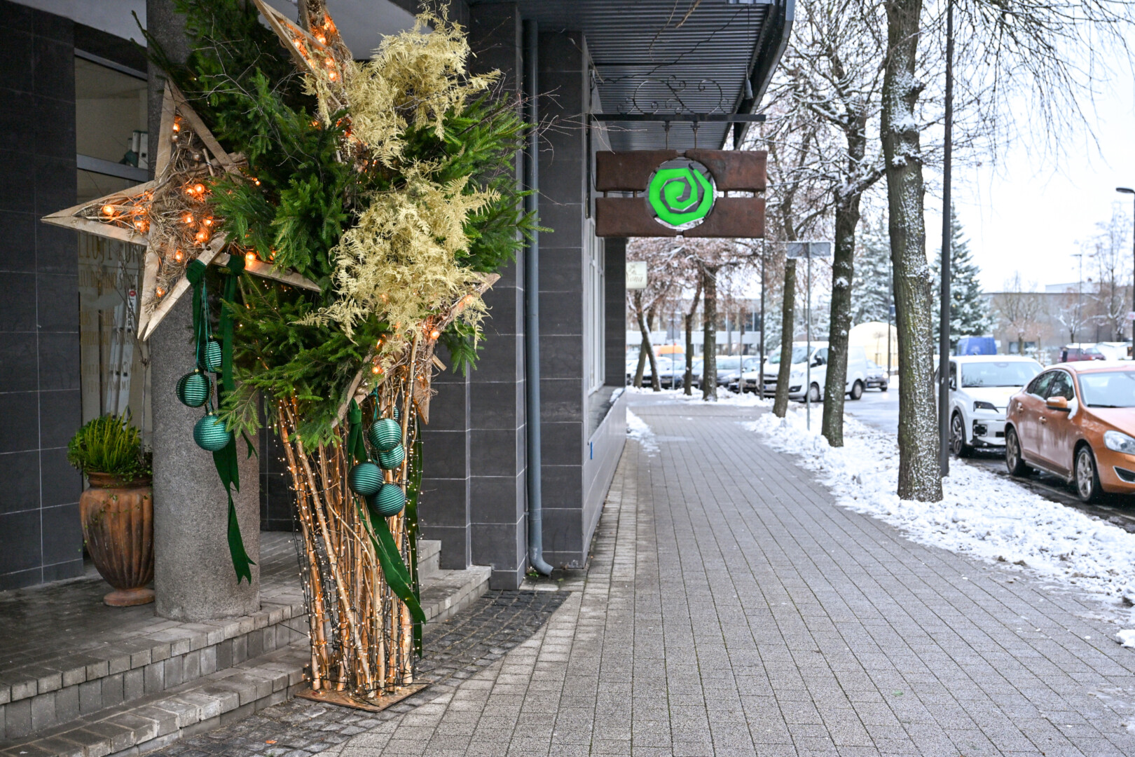 Šventinėmis dekoracijomis jau pasidabinusios kepyklėlės „Bakin“ viena iš įkūrėjų Gedvilė Rimkevičiūtė svarsto, kad tikriausiai jie ir buvę pirmieji, Panevėžyje pradėję kalėdiniu laikotarpiu puošti ne tik patalpų vidų, bet ir eksterjerą.