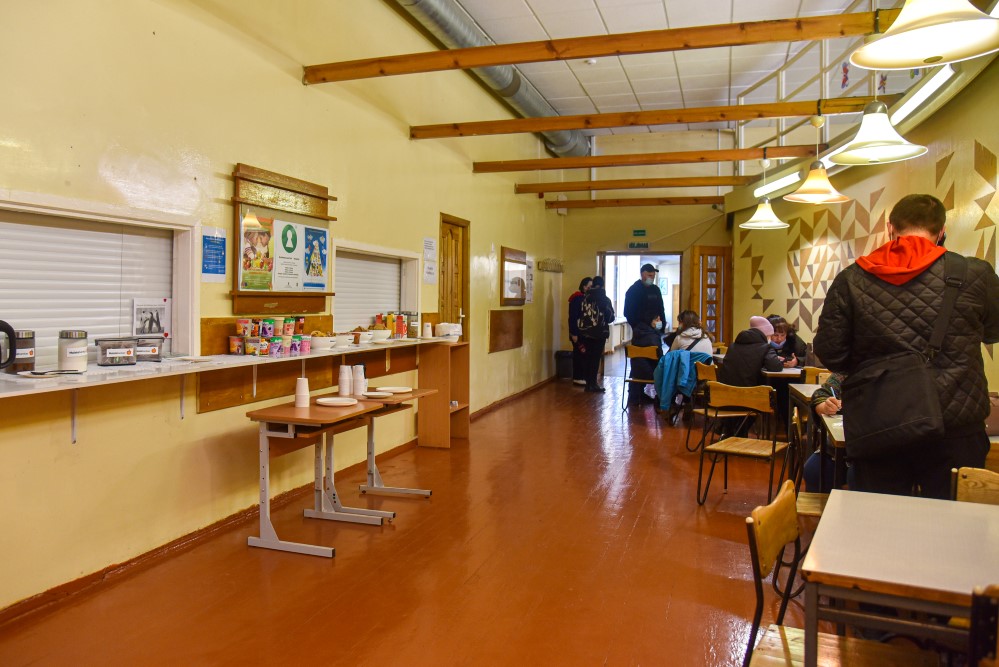 Apsilankius centre pirmadienį priešpiet darbas čia jau virė – aktų salėje buvo registruojami pabėgėliai. Centre stoviniavo apie trys dešimtys karo pabėgėlių. Kol moterys buvo užsiėmusios dokumentų tvarkymu, su vaikais jiems skirtoje erdvėje bendravo savanoriai. Čia pat „Maisto bankas“ kvietė pasivaišinti arbata bei įvairiais užkandžiais, buvo dalijami specialūs maisto daviniai. Antrame mokyklos aukšte baigiamos įrengi gyvenamosios patalpos.