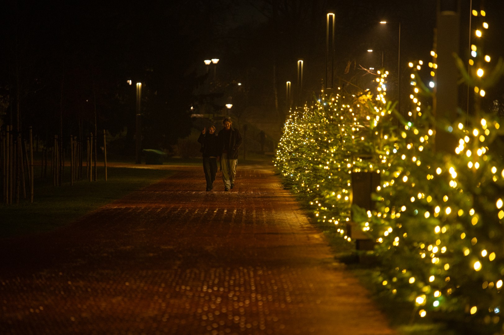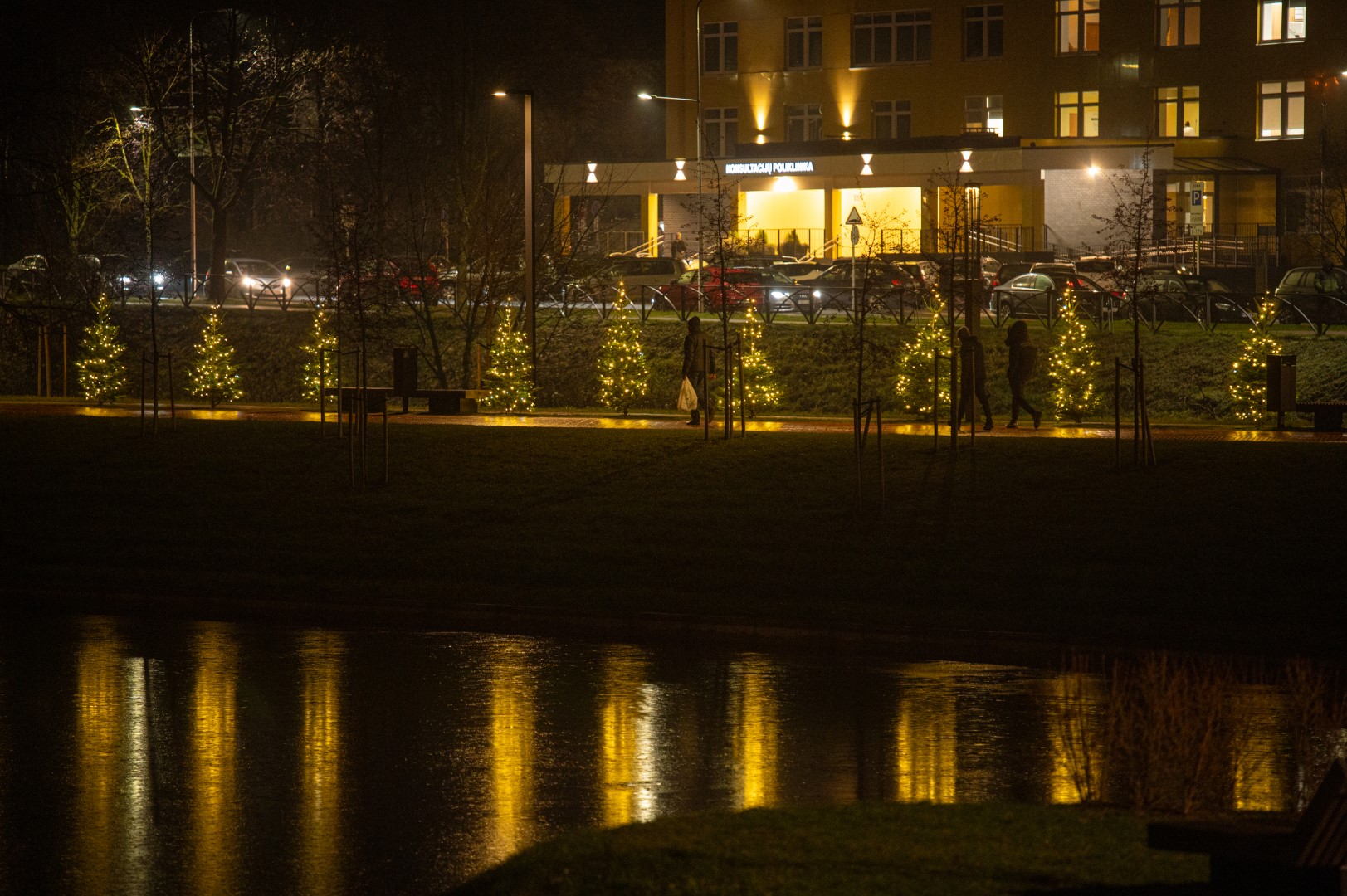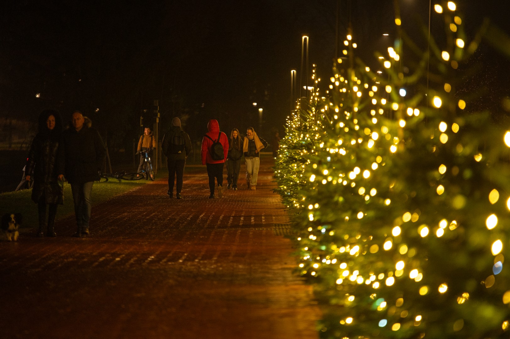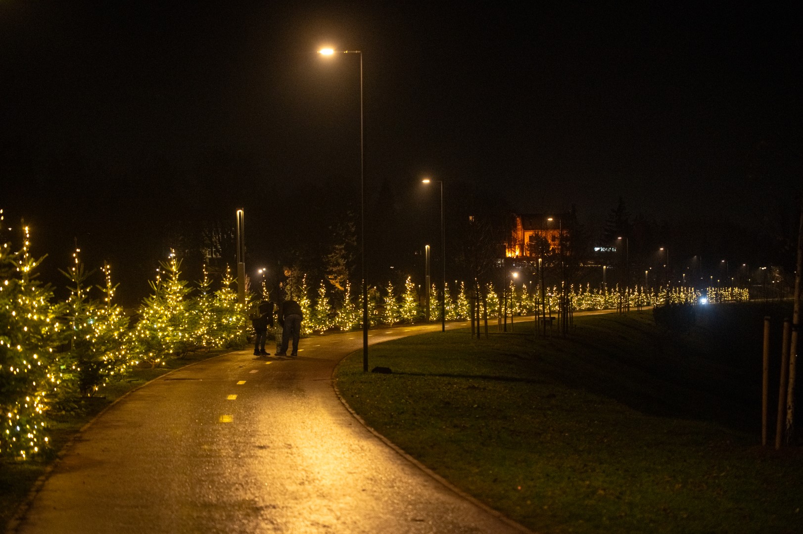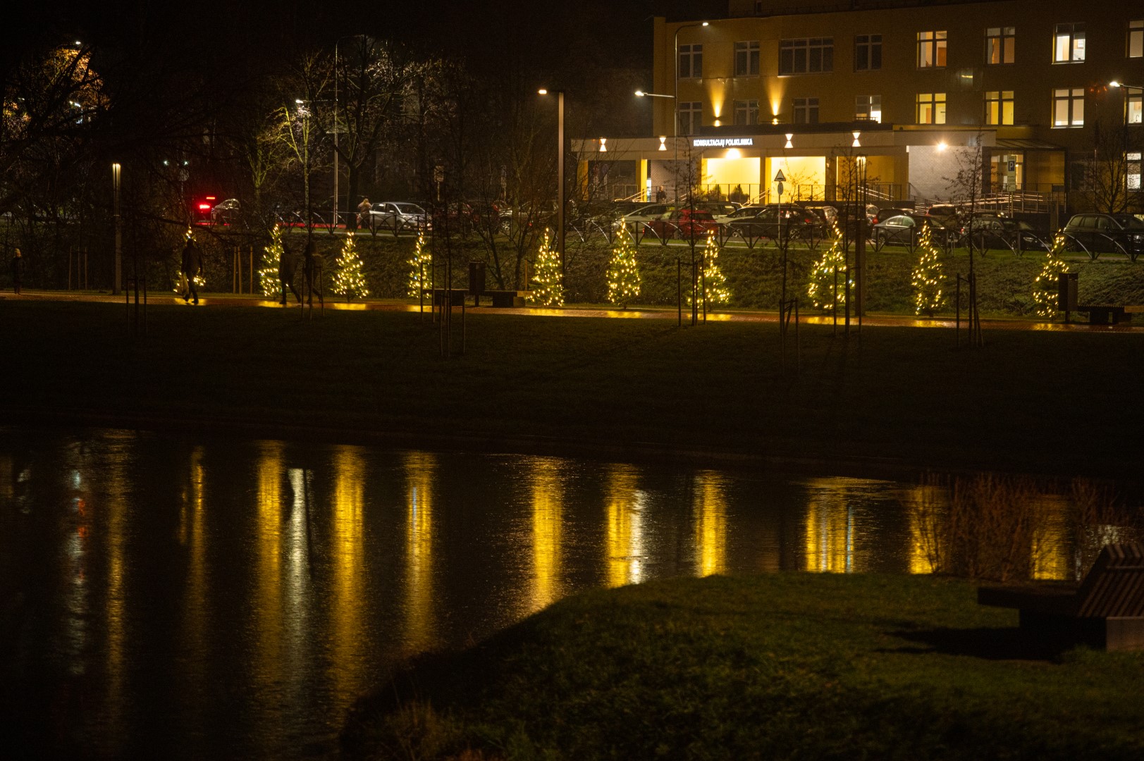 Kartu su eglutėmis apšviesti ir įėjimai į abu miesto parkus – Skaistakalnį nuo Muilo fabriko pusės bei Kultūros ir poilsio parką.