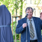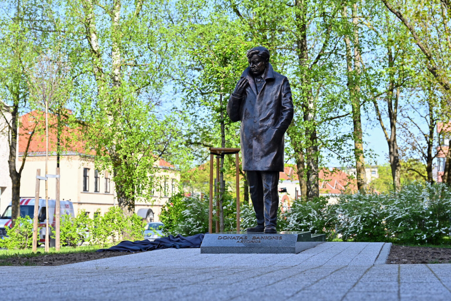 Panevėžyje, Laisvės aikštės prieigose, praeivius pasitiks tarsi į teatrą skubantis Donatas Banionis.