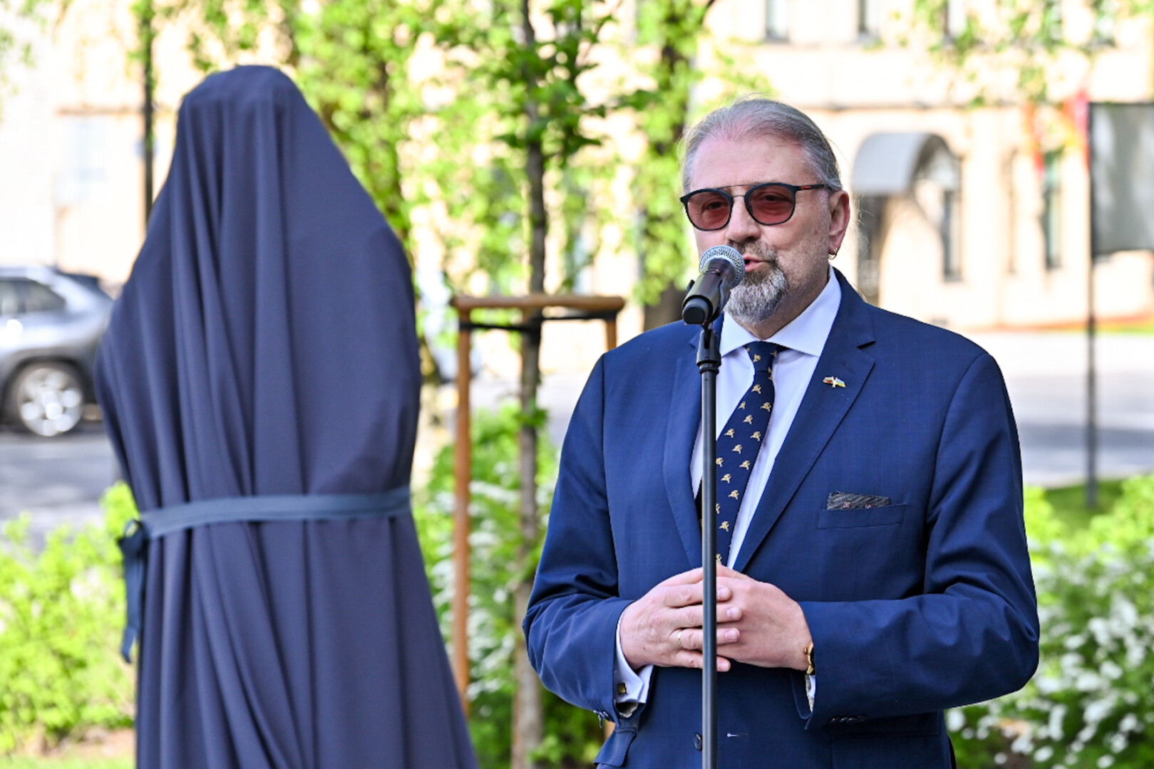 „Šiandien Panevėžyje išties išskirtinė diena Donato Banionio talento gerbėjams. Minime legendinio režisieriaus J. Miltinio mokinio, teatro ir kino aktoriaus, Panevėžio miesto garbės piliečio D. Banionio 100-metį. Šiandien atidengiame ir jam skirtą paminklą, įprasminantį nueitą ilgą kūrybinį kelią. Dėkoju šeimai ir visiems prisidėjusiems, kad D. Banionio atminimas ir ryšys su J. Miltinio teatru, o tuo pačiu ir su Panevėžiu, būtų įamžintas“, – skulptūros atidengimo ceremonijoje kalbėjo Panevėžio meras Rytis Račkauskas.