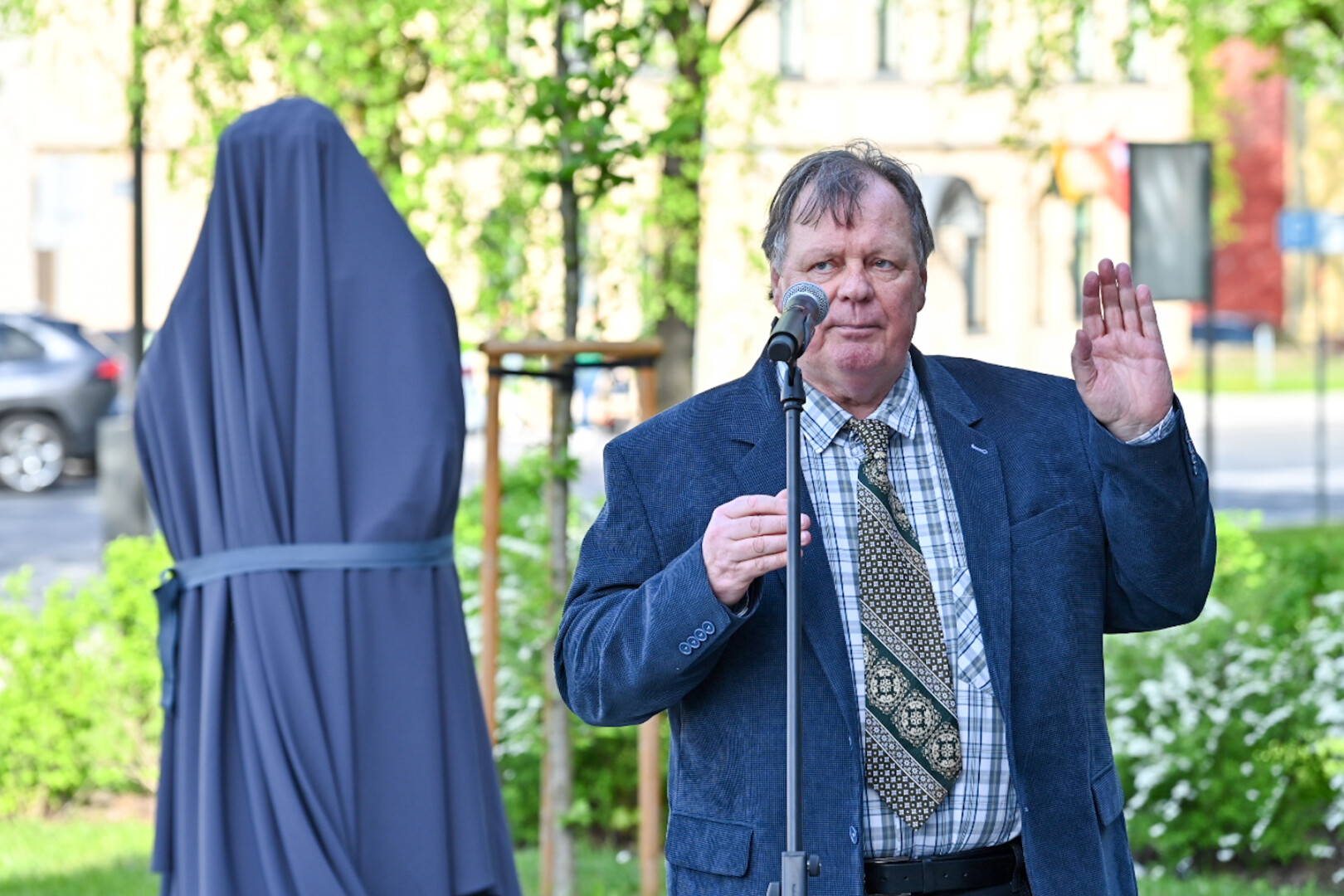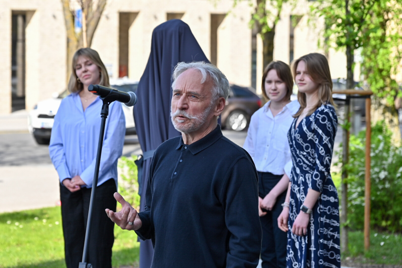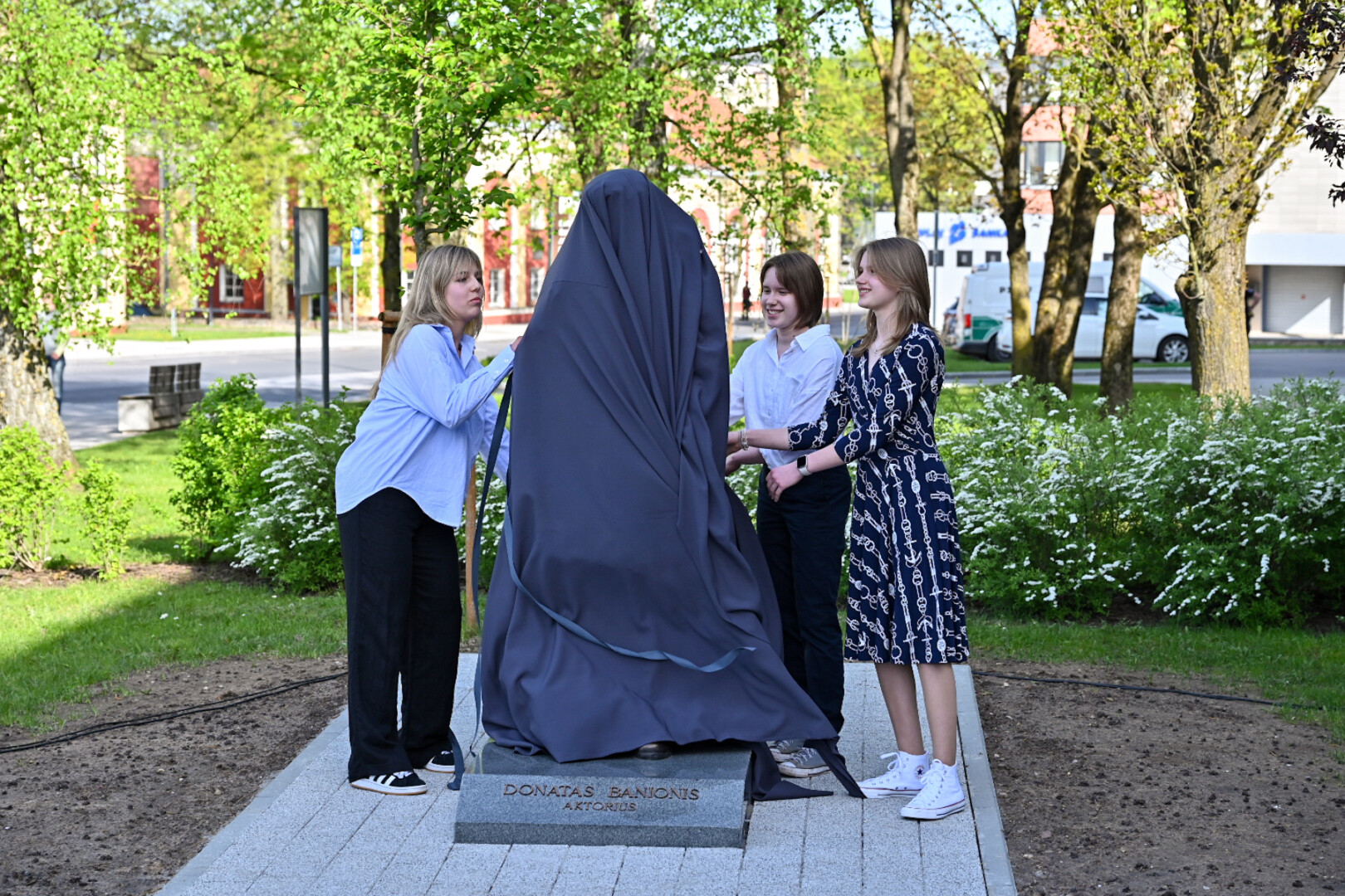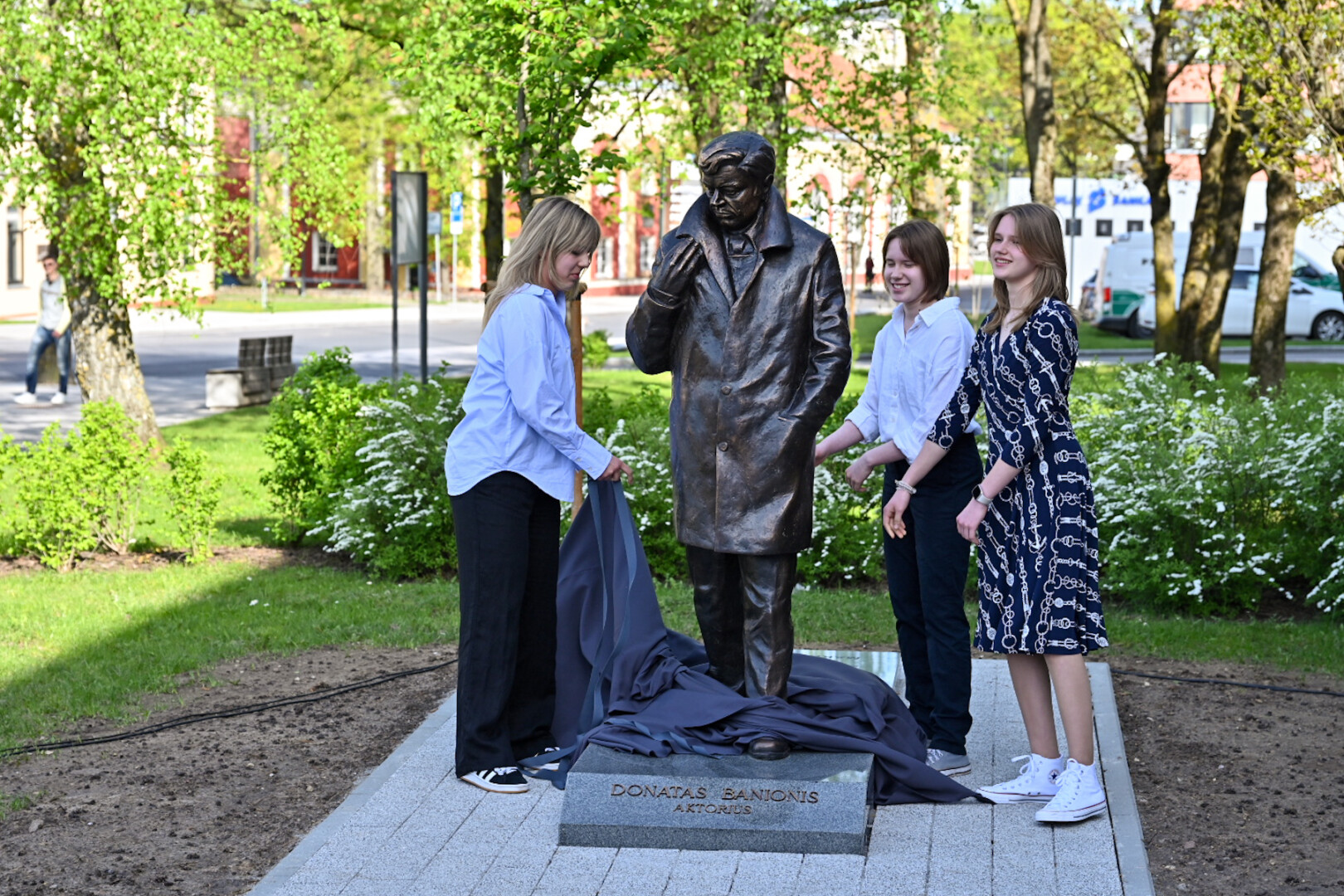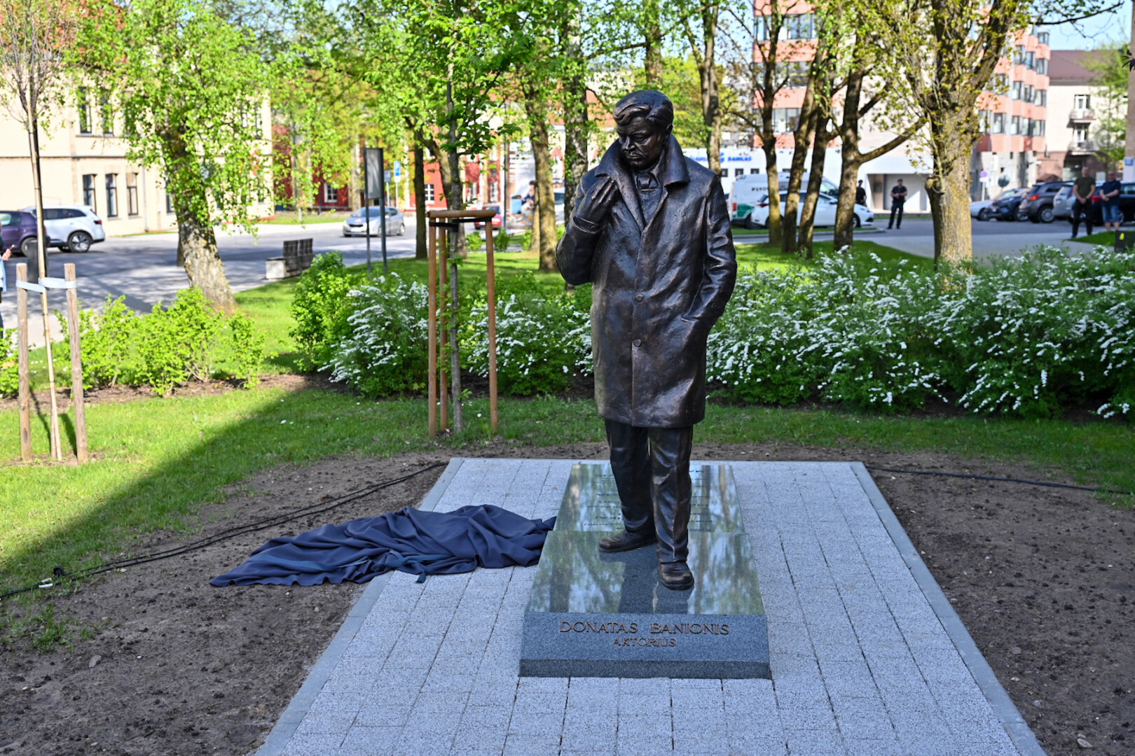 Panevėžyje, Laisvės aikštės prieigose, praeivius pasitiks tarsi į teatrą skubantis Donatas Banionis.