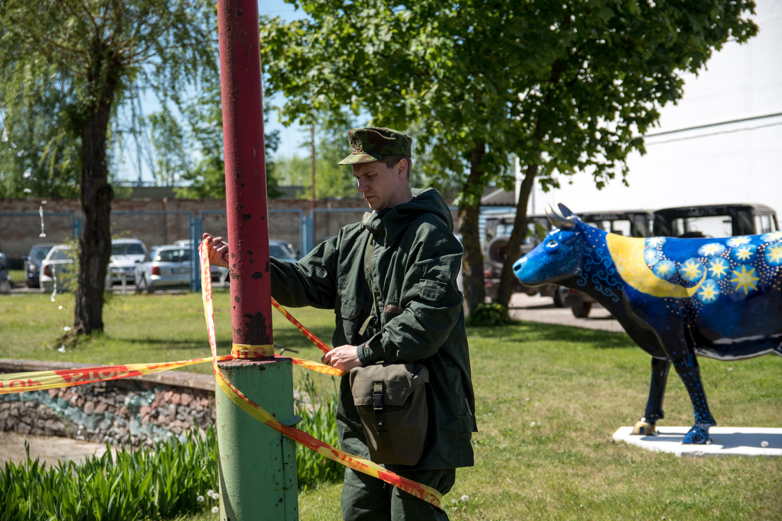 „Priešiškai nusiteikusios pajėgos susprogdino šioje įmonėje saugomo amoniako rezervuarą ir sukėlė pavojų visiems aplinkiniams. Išsiliejus amoniakui buvo užteršta visa teritorija, tačiau praėjus kiek daugiau nei valandai, pavojus neutralizuotas“, – „Sekundei“ teigė E. Sriubas.