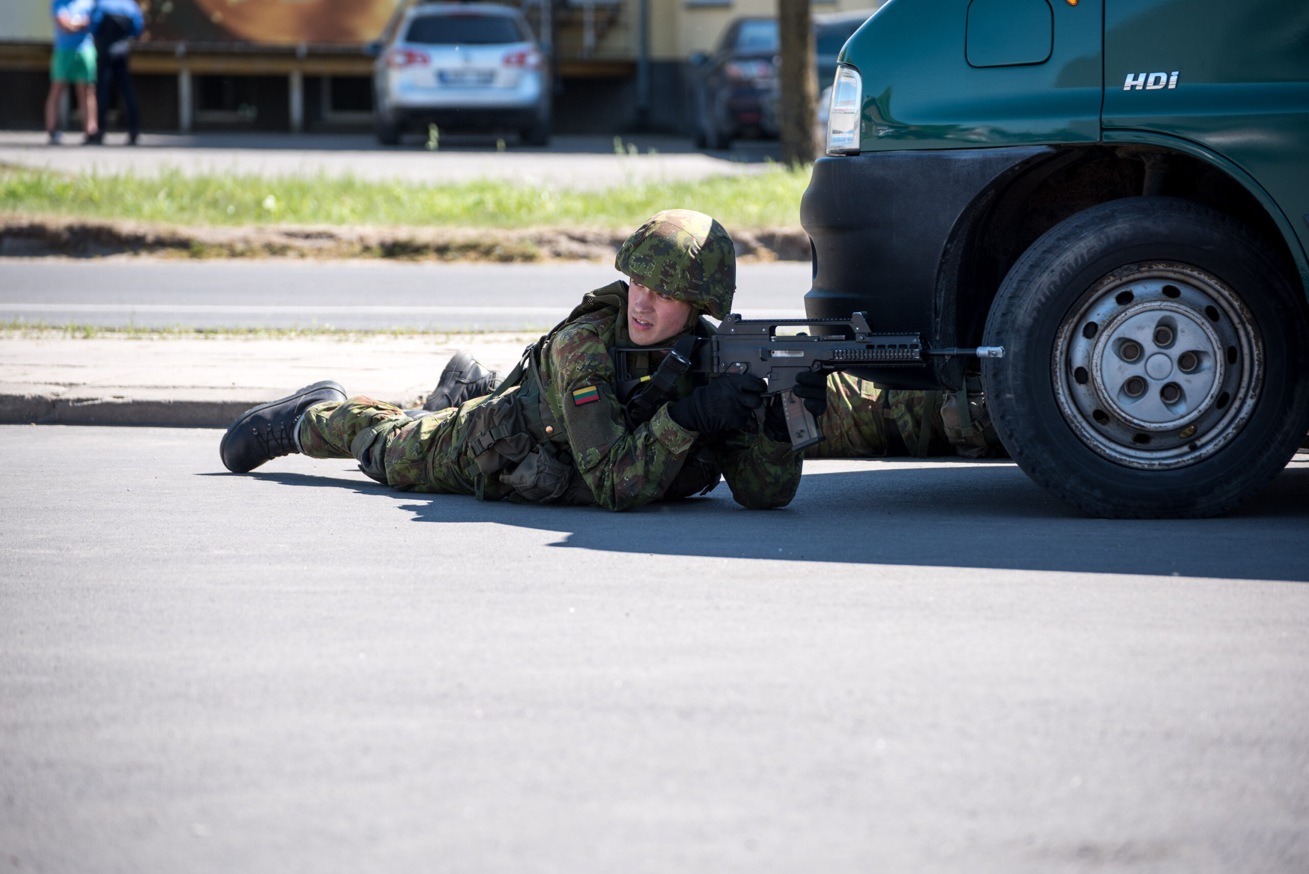 Aukštaitijos sostinėje pirmadienį įvesta karinė padėtis. Daugiau nei 800 ginkluotų kareivių, nuolat aidintys šūviai, sprogimai ir civilių žmonių evakuacijos savaitei taps miesto realybe, tačiau panevėžiečiai baimintis neturėtų. Visa tai – tik gerai suplanuotos karinės pratybos „Karaliaus kirtis 2017“.