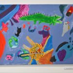 „Kadangi mokykloje atostogos, senelio dažai naikinami kuriant meną“, – juokauja T. Rudokas.