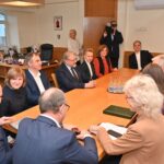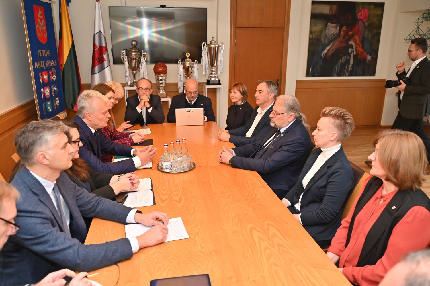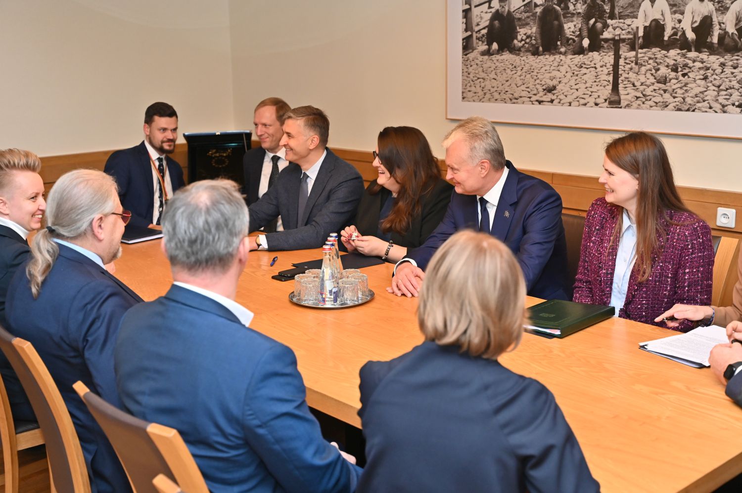 Drauge su meru Ryčiu Račkausku padėjęs gėlių prie paminklo 1863–1864 m. sukilimo dalyviams ir atminimo lentos Lietuvos laisvės kovotojams atminti, Prezidentas G. Nausėda susitiko su Panevėžio miesto savivaldybės vadovais.