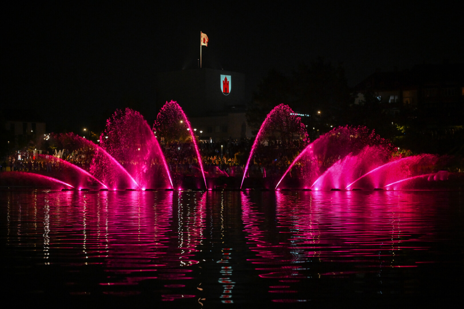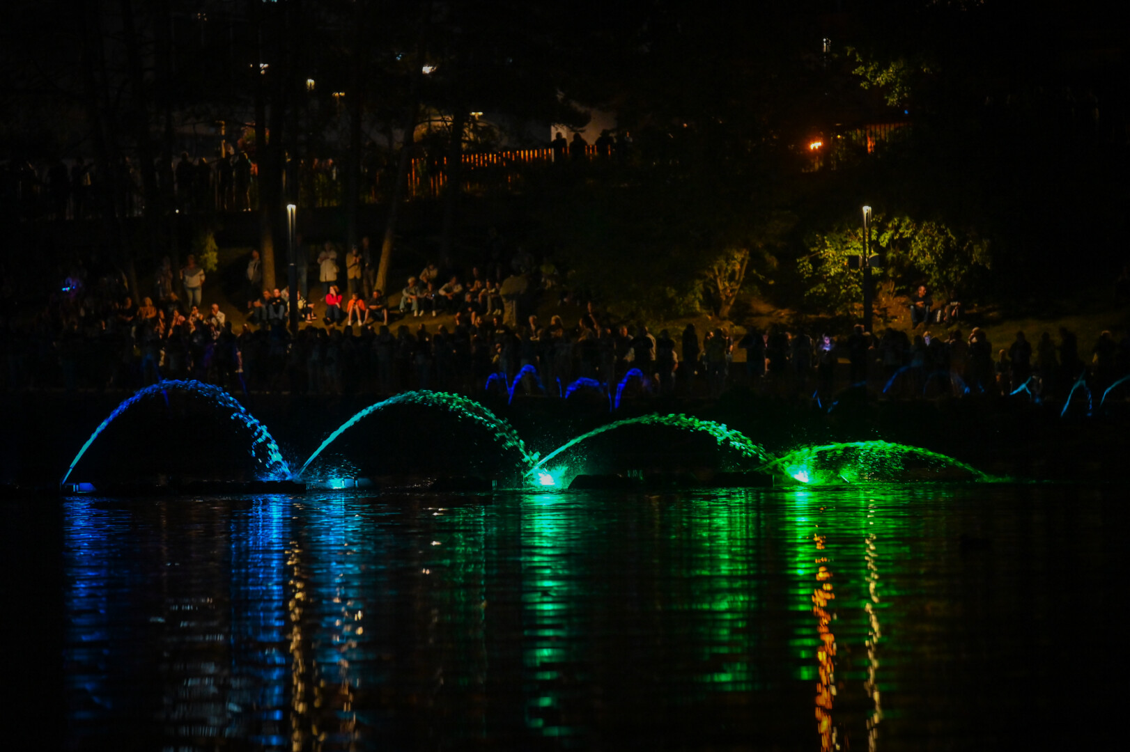 Didysis Senvagės fontanas šįvakar miestui ir miestiečiams surengė ypatingą spektaklį – gimtadienio sveikinimą.