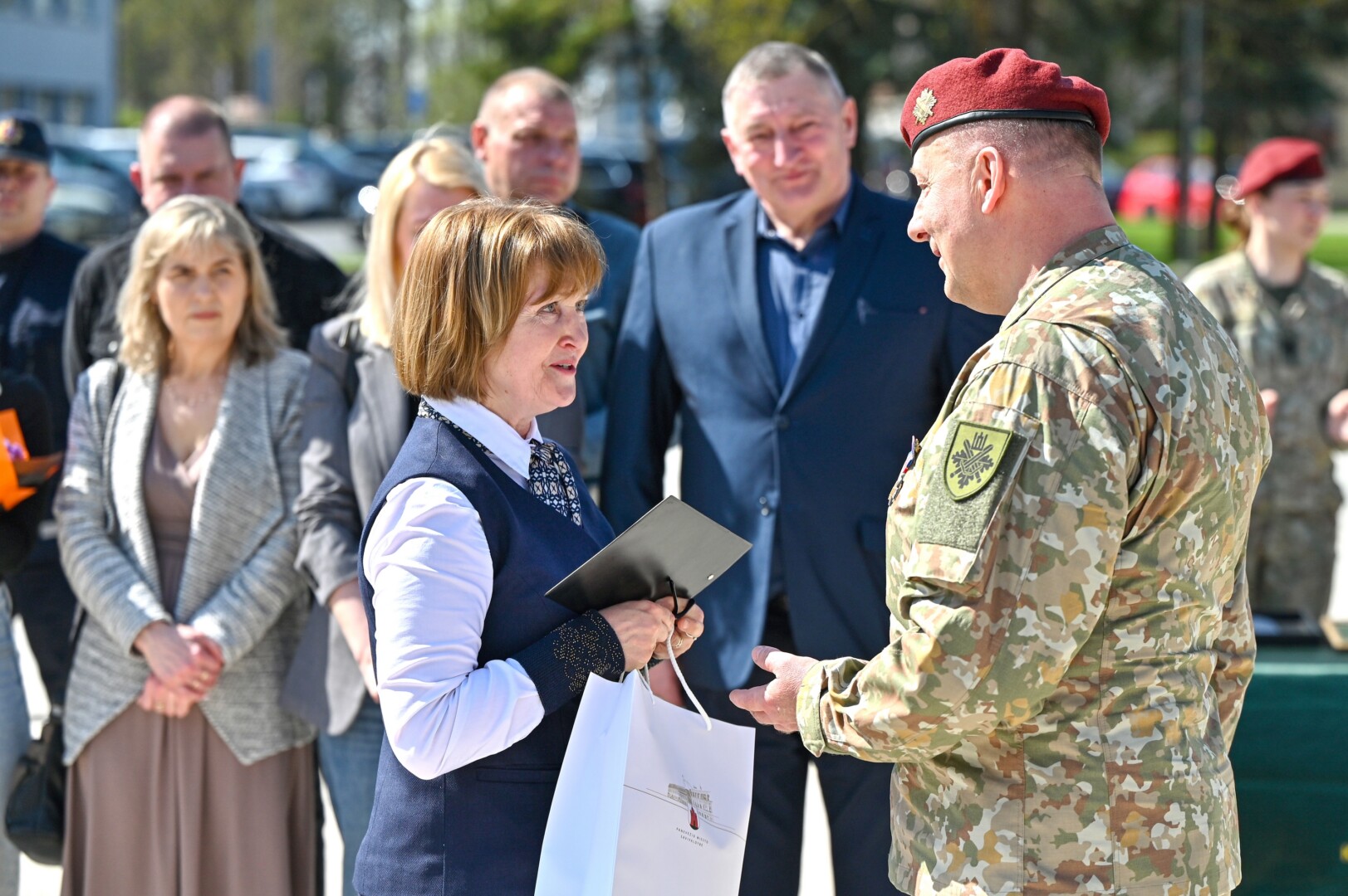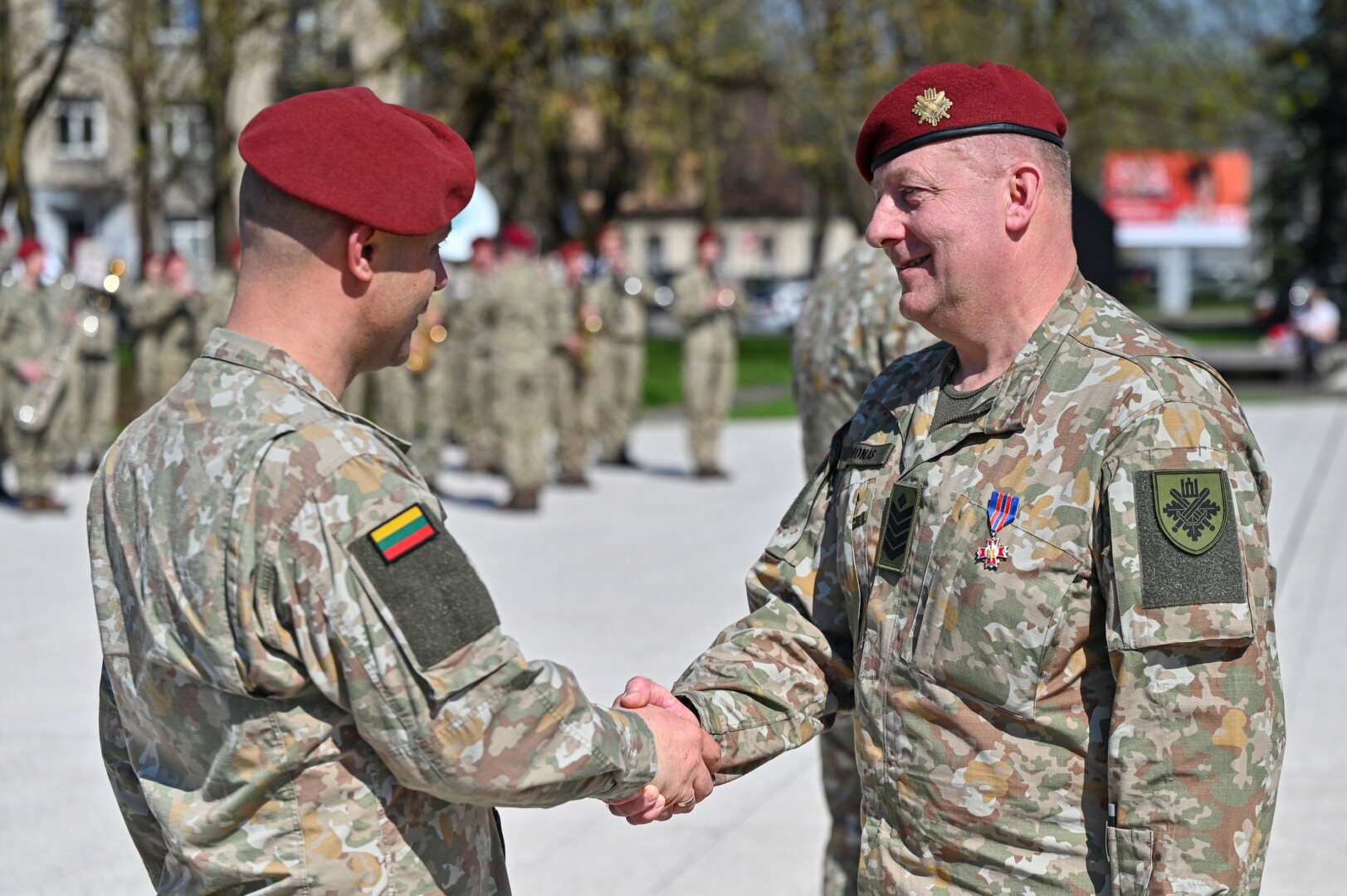 „Jūsų šūkis – „Mūsų galia – meilė Tėvynei“ – tai ne tik žodžiai. Tai įsipareigojimas ir vertybių kelias, kuriuo kasdien žengiate, gindami Lietuvą ir telkdami bendruomenes. Tai širdies pozicija, kurią gina ne tik ginklas, bet ir tikėjimas laisve, garbe ir pareiga. Vertinu kiekvieno iš Jūsų indėlį – karių savanorių, Rinktinės vadų ir visų bendražygių – už budėjimą valstybės saugumo fronte bei aktyvų dalyvavimą miesto gyvenime. Jūsų buvimas mokyklose, renginiuose, bendruomenėse – tai neįkainojama stiprybė, kuri įkvepia ir teikia pasitikėjimo. Nuoširdžiai dėkoju į atsargą išeinančiam Rinktinės vyriausiajam puskarininkiui ir linkiu stiprybės, ryžto ir išminties perimančiam šią garbingą atsakomybę. Brangūs kariai, tegul Jums nepritrūksta vienybės, ištvermės ir tvirto tikėjimo tuo, ką darote“, – sveikinimo žodį tarė Panevėžio miesto merė Loreta Masiliūnienė.