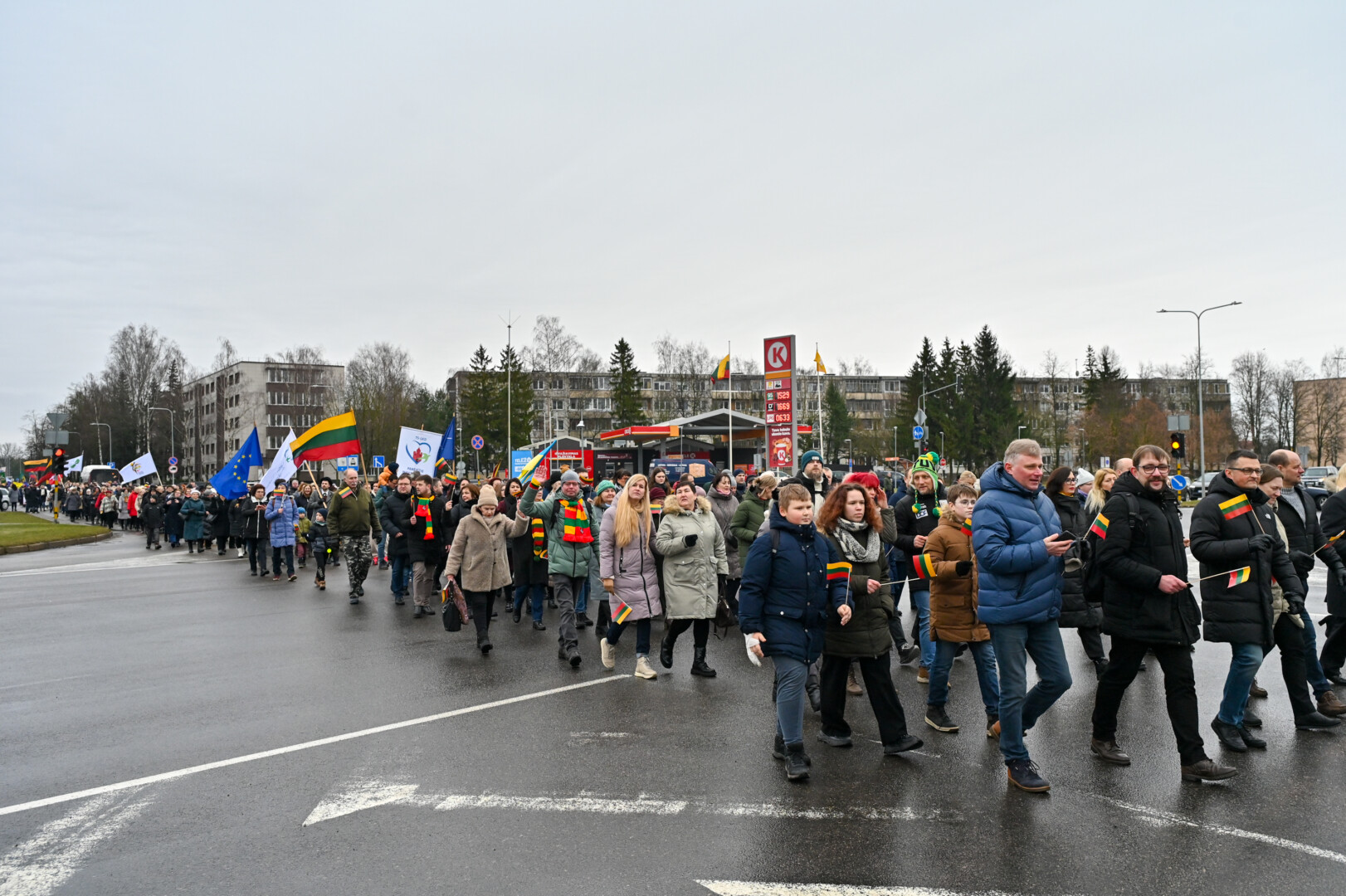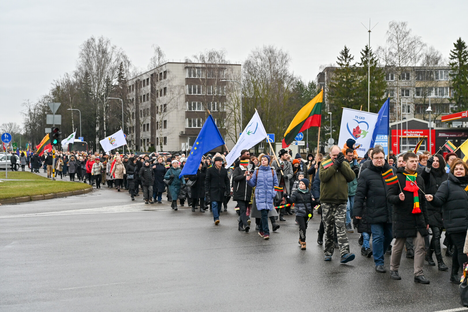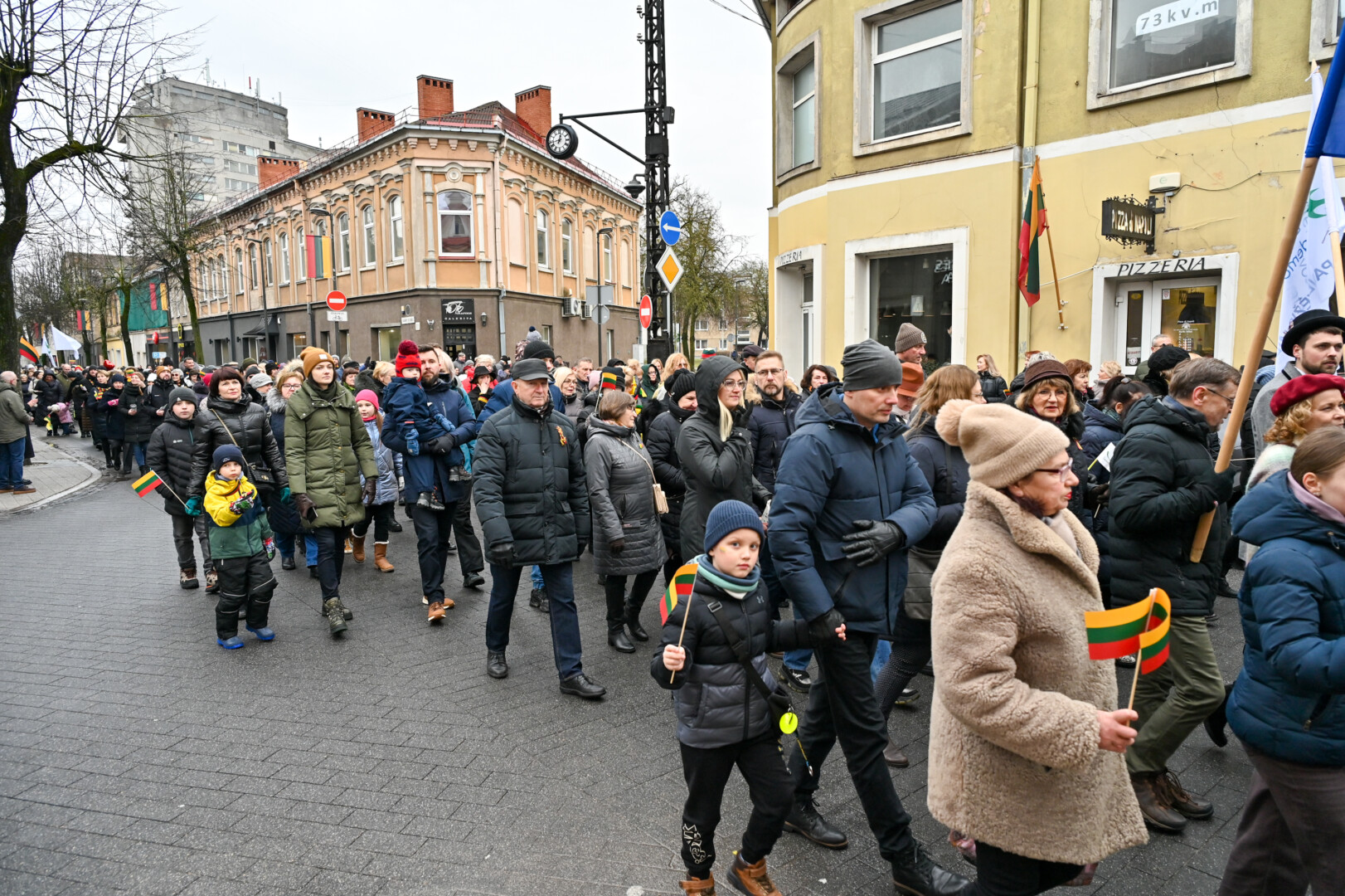 Po iškilmingos ceremonijos Laivės aikštėje iki „Kalnapilio“ arenos Elektros, Vasario 16-osios, Parko gatvėmis nusidriekė šventinė eisena. Jos akimirkas užfiksavo „Sekundės“ fotografas Gediminas Kartanas.