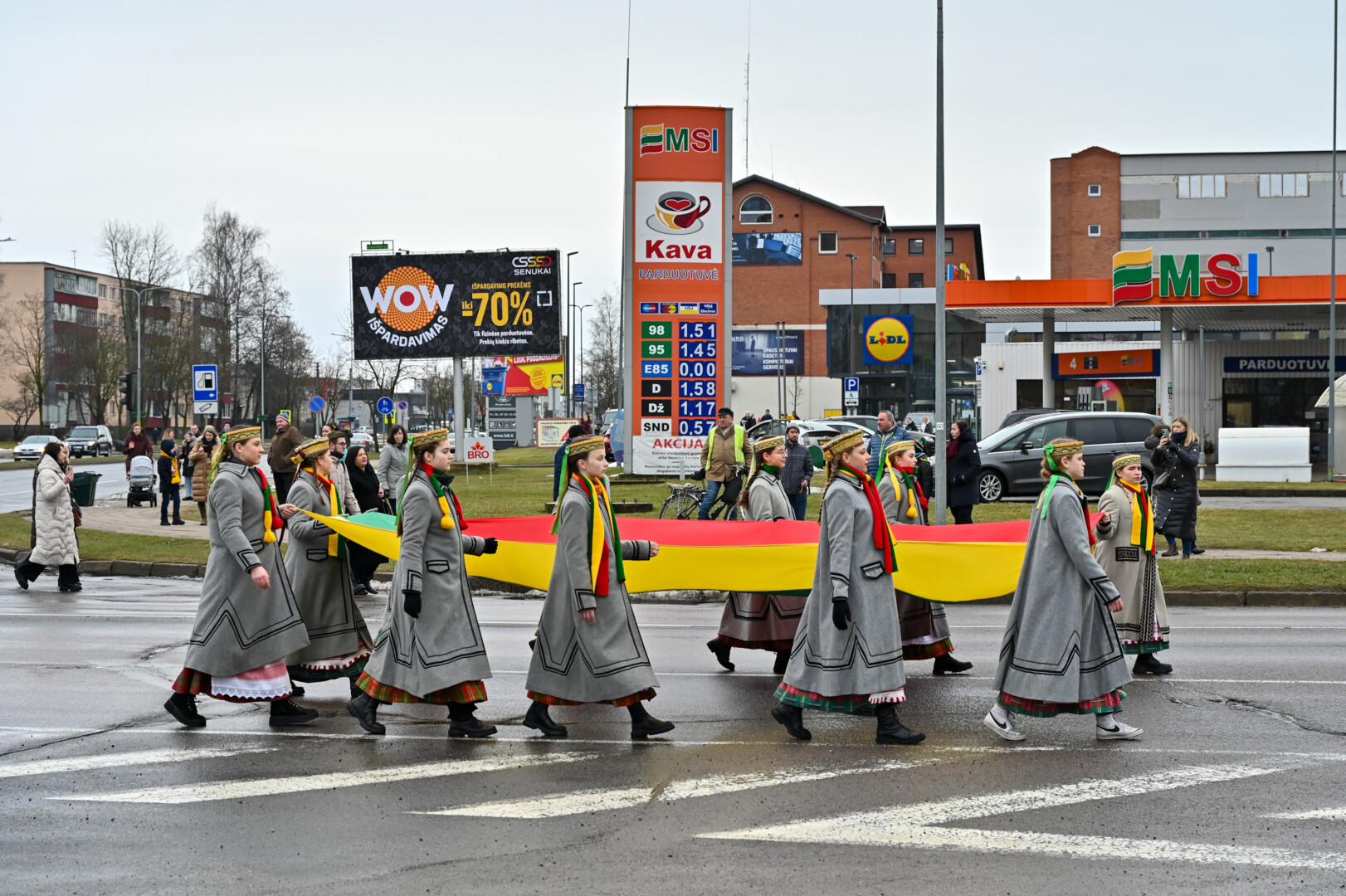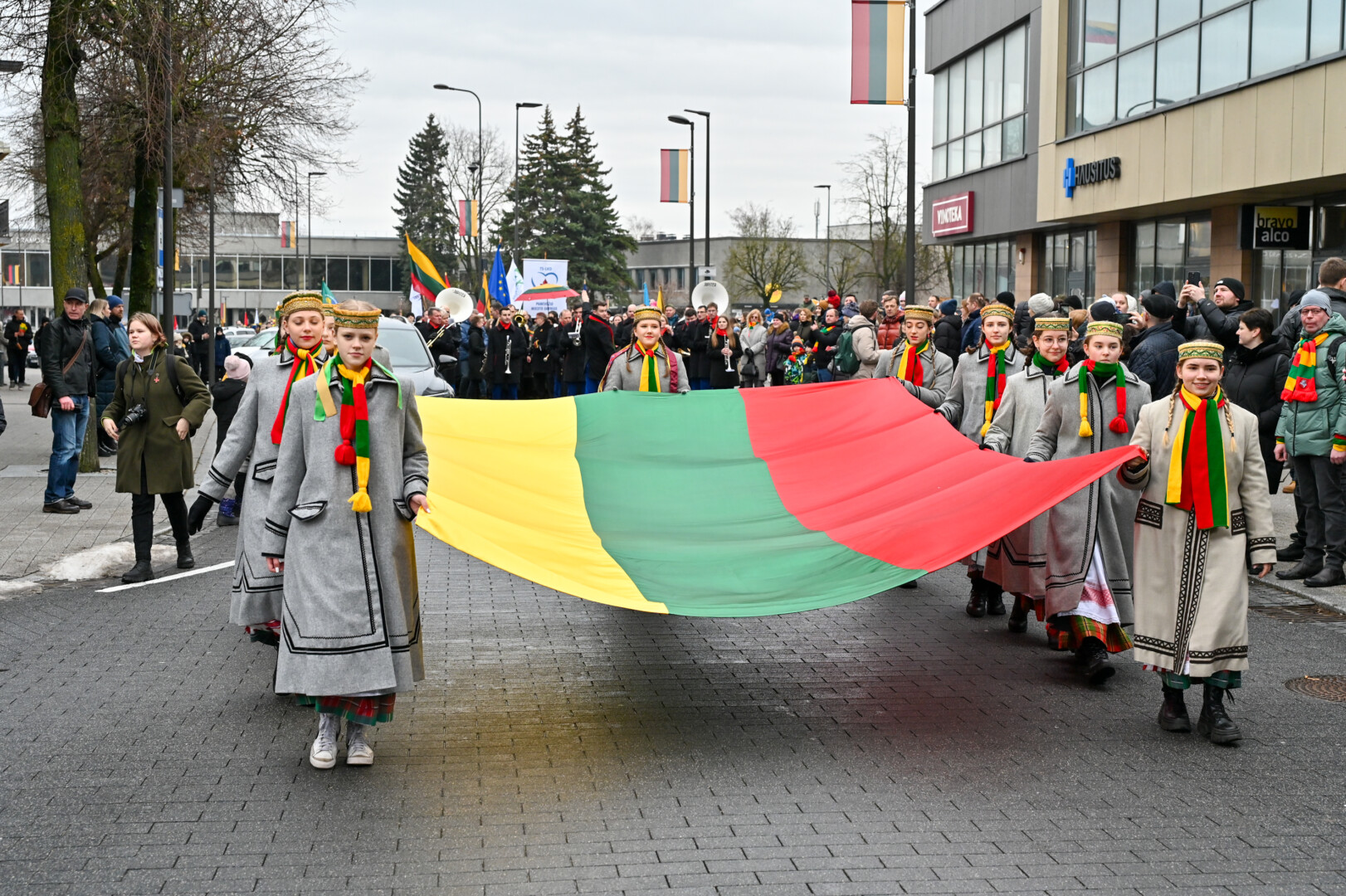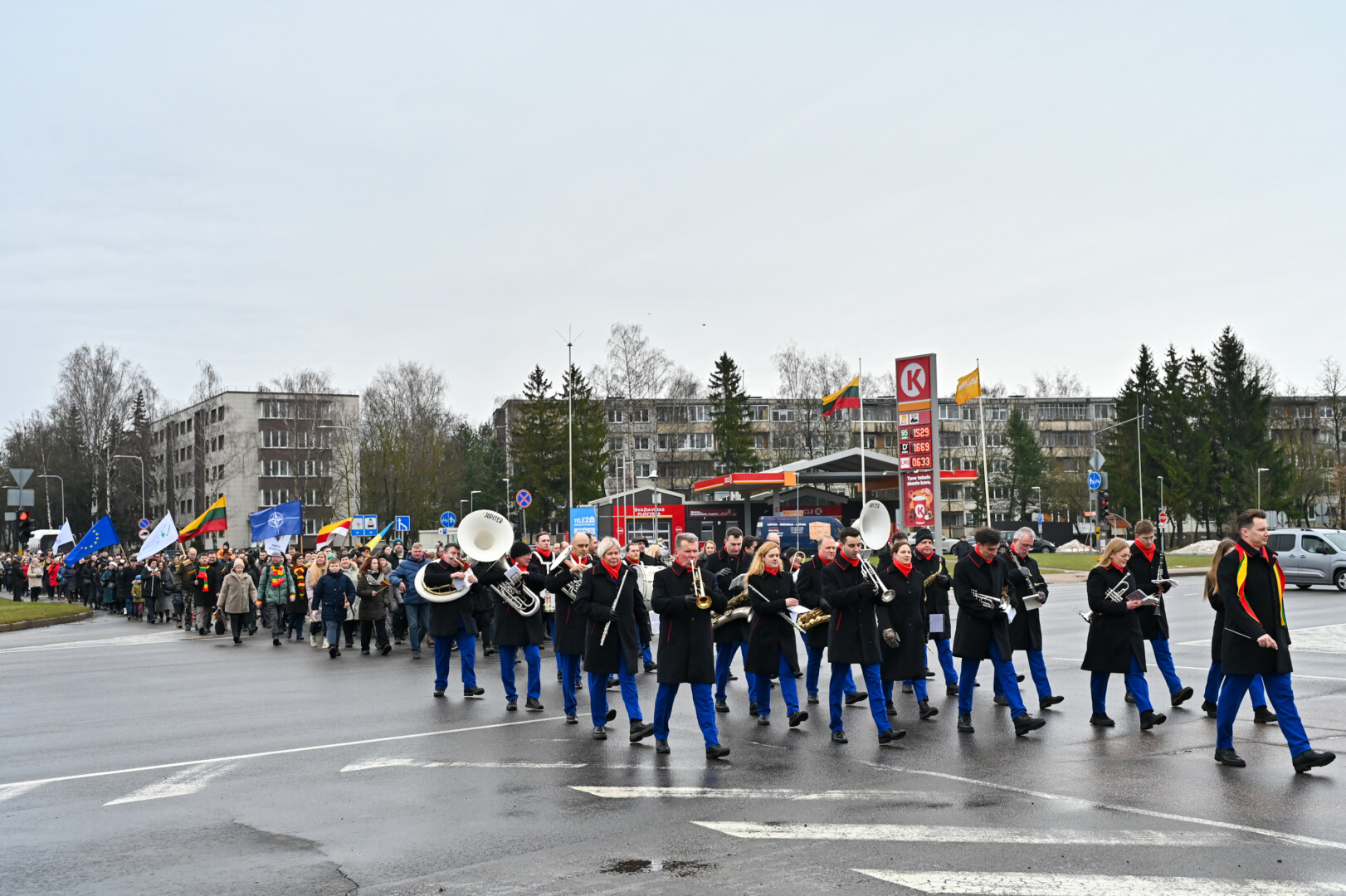 Po iškilmingos ceremonijos Laivės aikštėje iki „Kalnapilio“ arenos Elektros, Vasario 16-osios, Parko gatvėmis nusidriekė šventinė eisena. Jos akimirkas užfiksavo „Sekundės“ fotografas Gediminas Kartanas.
