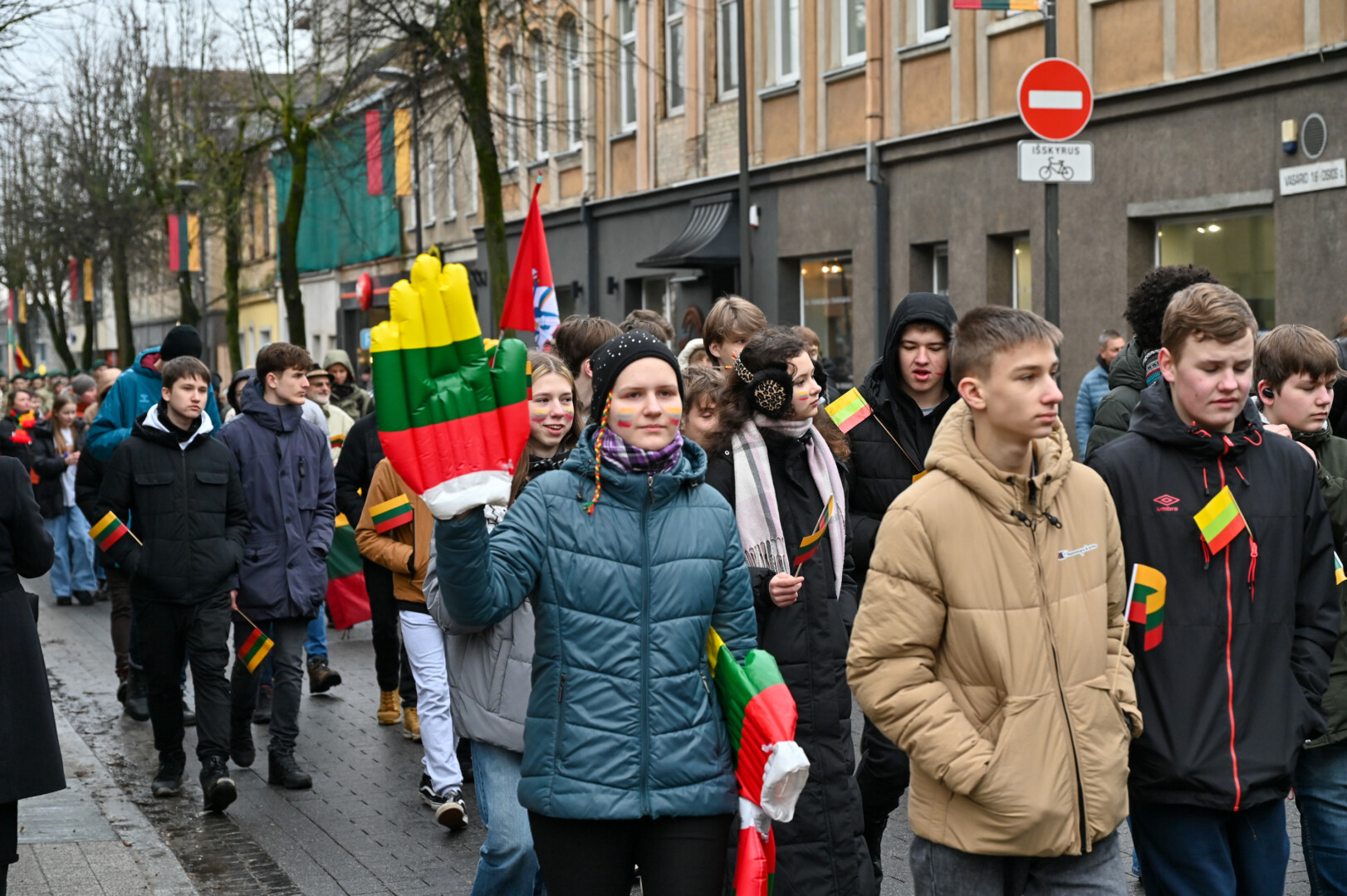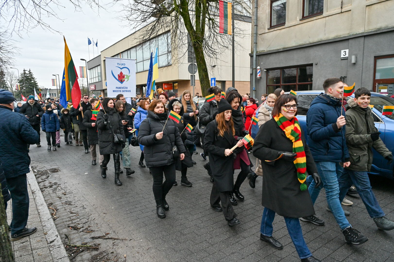 Valstybės atkūrimo dienos proga Panevėžys nusidažė Trispalvėmis. Minia panevėžiečių ir miesto svečių pasileido į šventinę eiseną.