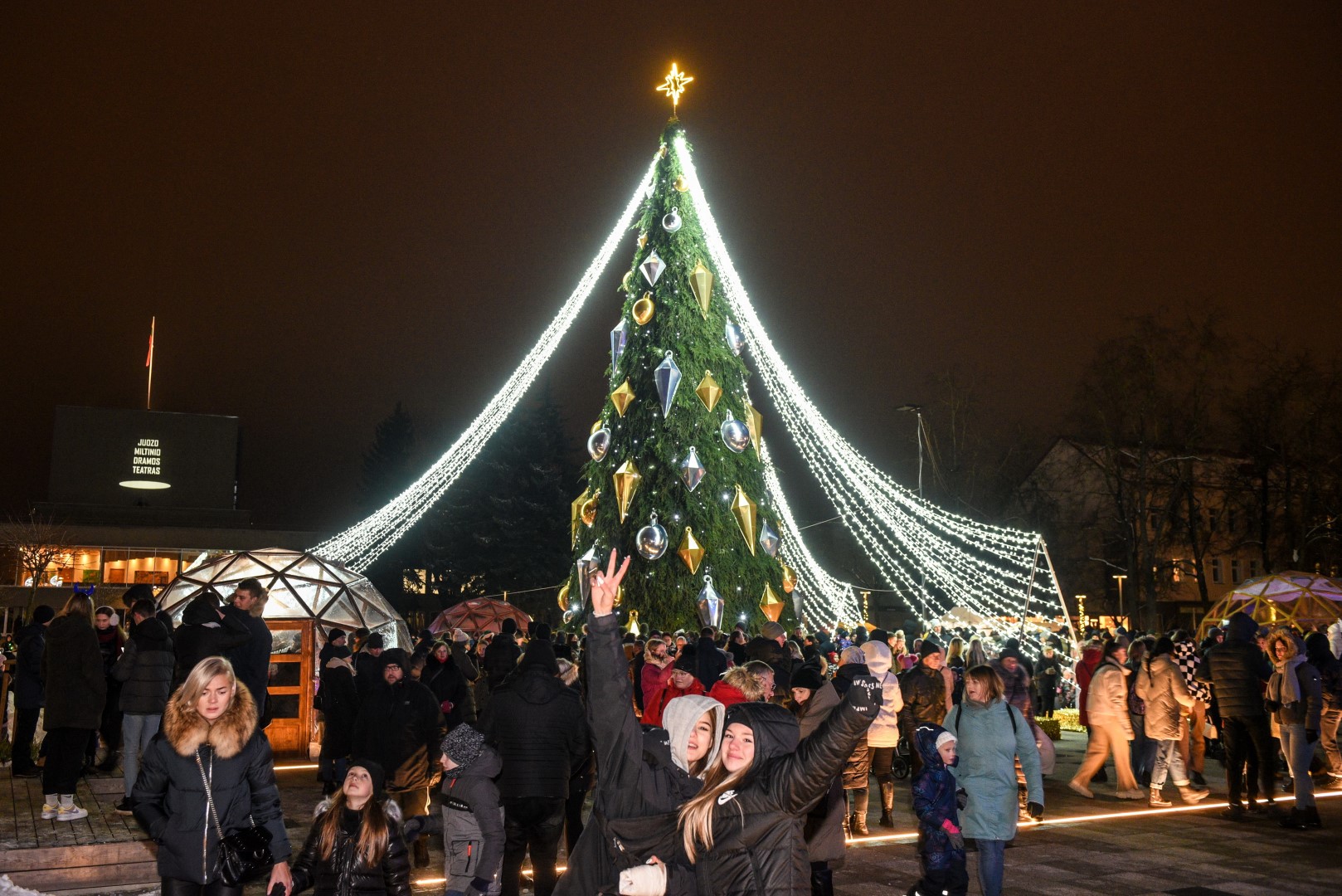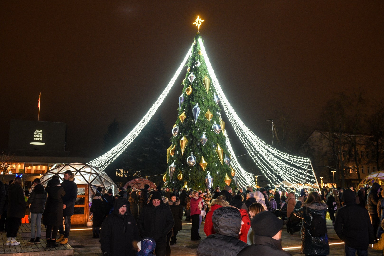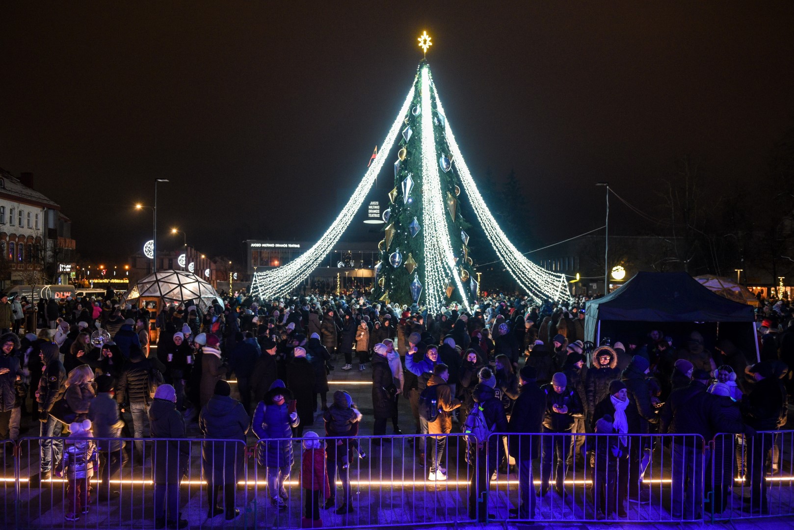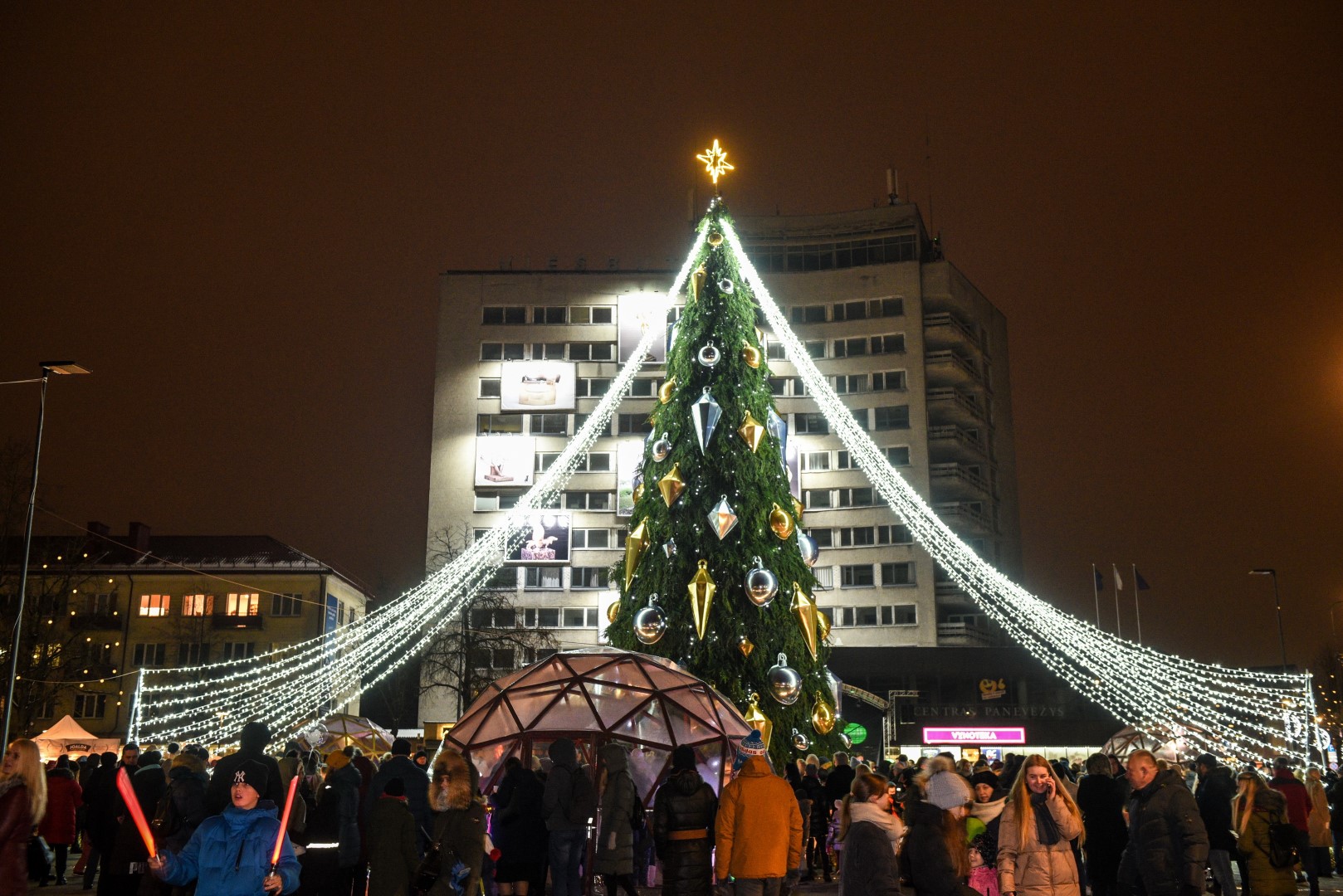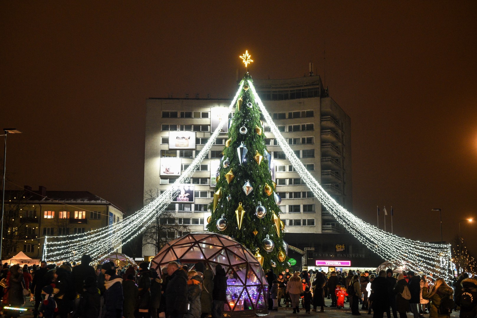 Švenčių dvasia užliejo Panevėžį – penktadienio vakarą Laisvės aikštėje sužibo Kalėdų eglė.