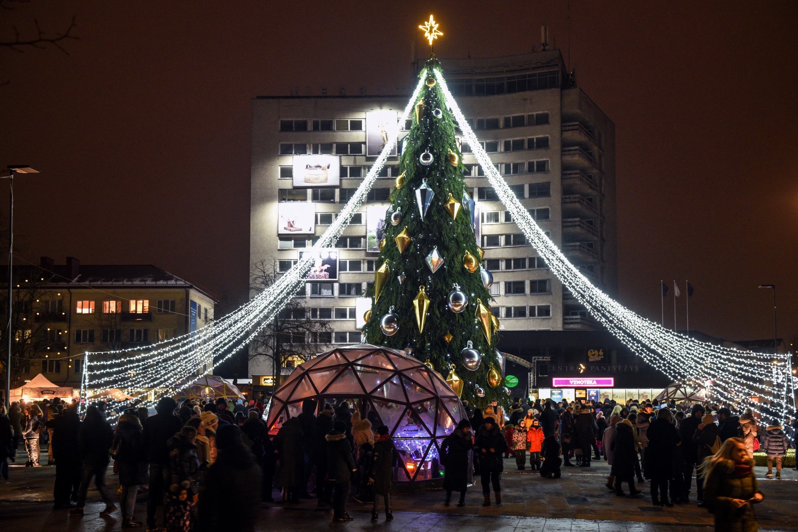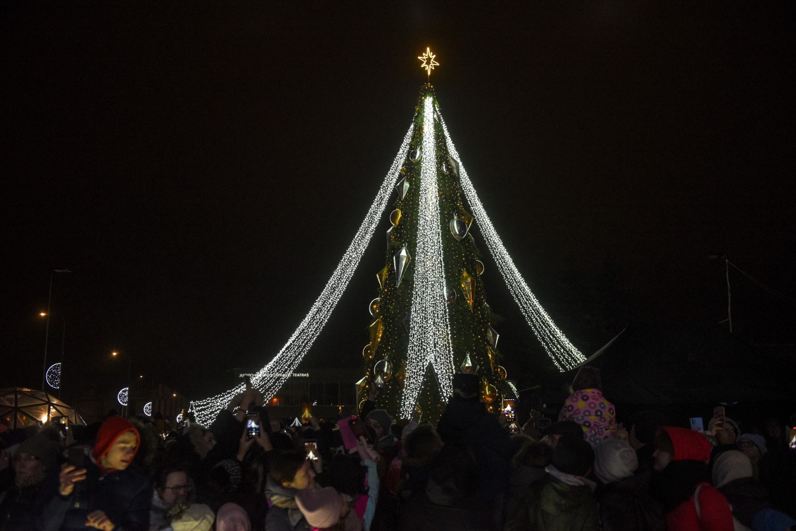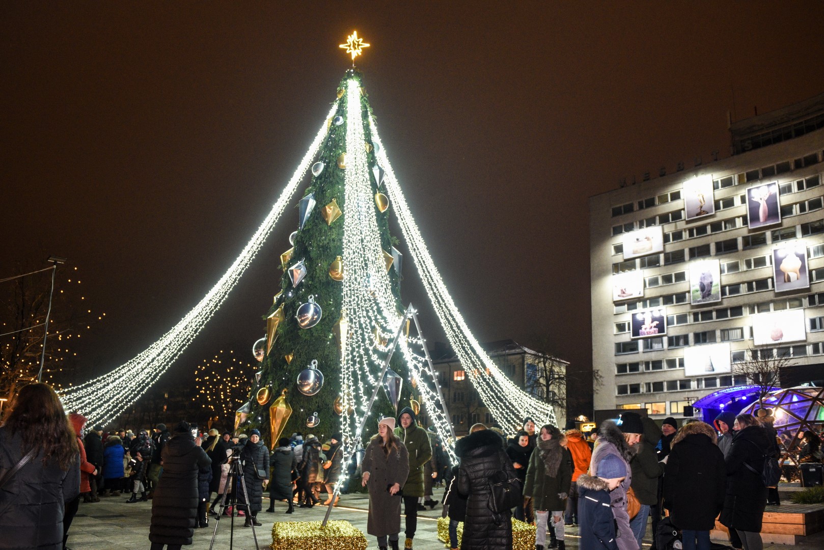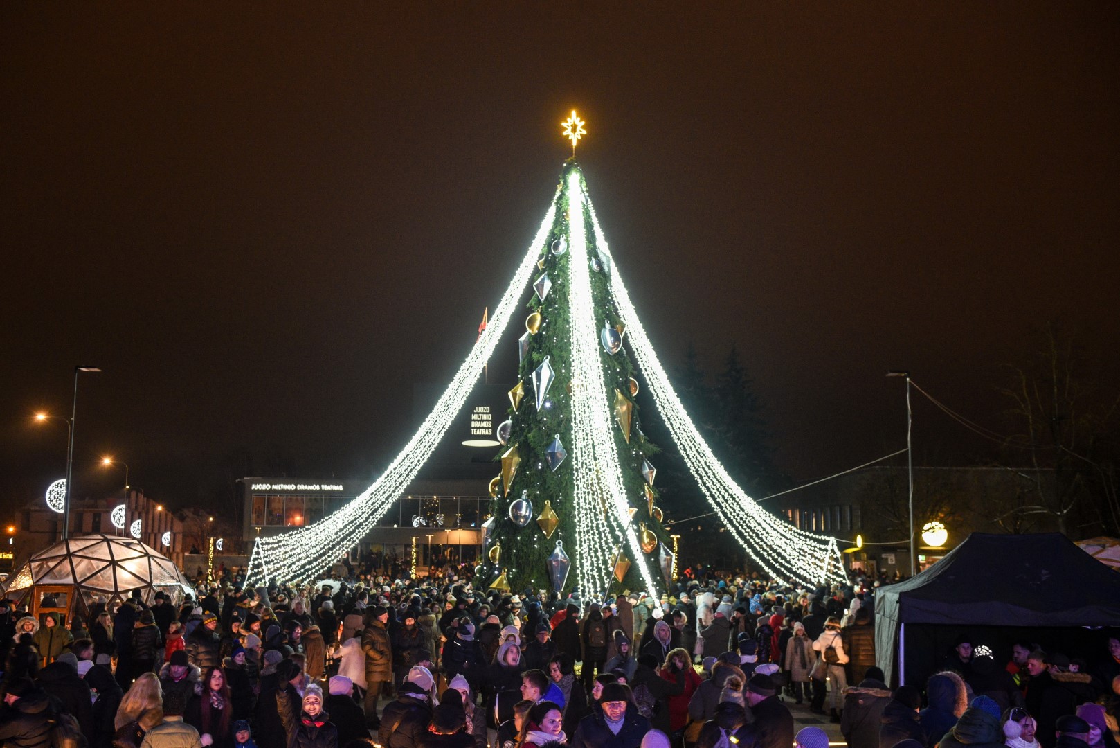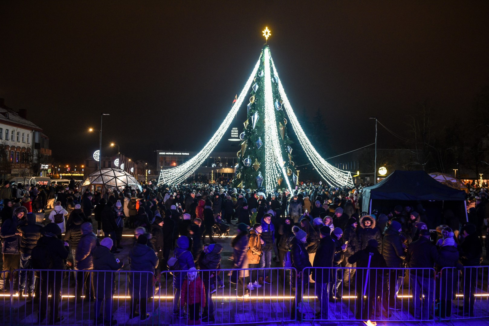 Švenčių dvasia užliejo Panevėžį – penktadienio vakarą Laisvės aikštėje sužibo Kalėdų eglė.